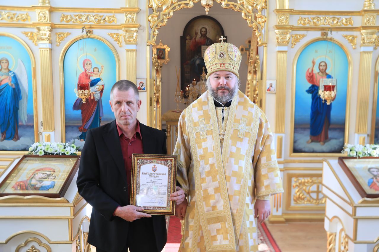 После Божественной литургии правящий архиерей вручил благодарственные письма прихожанам и благодетелям храма.