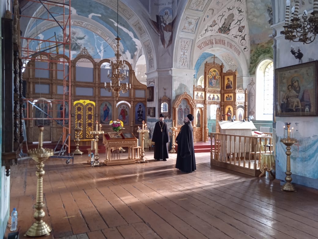 За последнее время в храме были произведены работы по постройке нового крыльца, заливке отмостки, замене напольного покрытия в притворе храма, установлены деревянные иконостасы в трех приделах. Настоятель обсудил с архиереем дальнейшие этапы ремонта, связанные с кровлей, заменой окон, проведением вентиляции и замене газовых отопительных котлов. Важным вопросом обсуждения стал выбор нового престола.