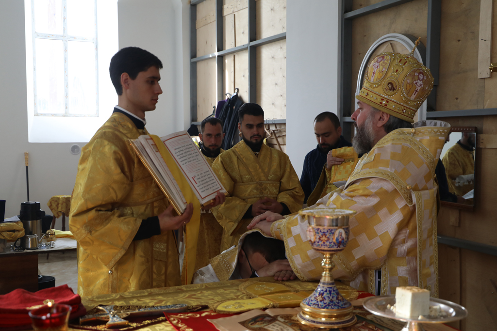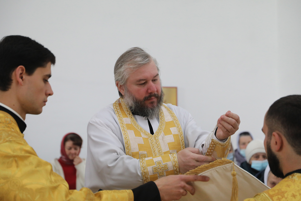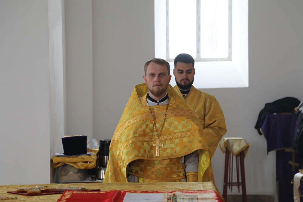 Его Преосвященству сослужили благочинный приходов Зверево-Никольского церковного округа, настоятель храма иерей Димитрий Дяур и диакон Трофим Осяк.