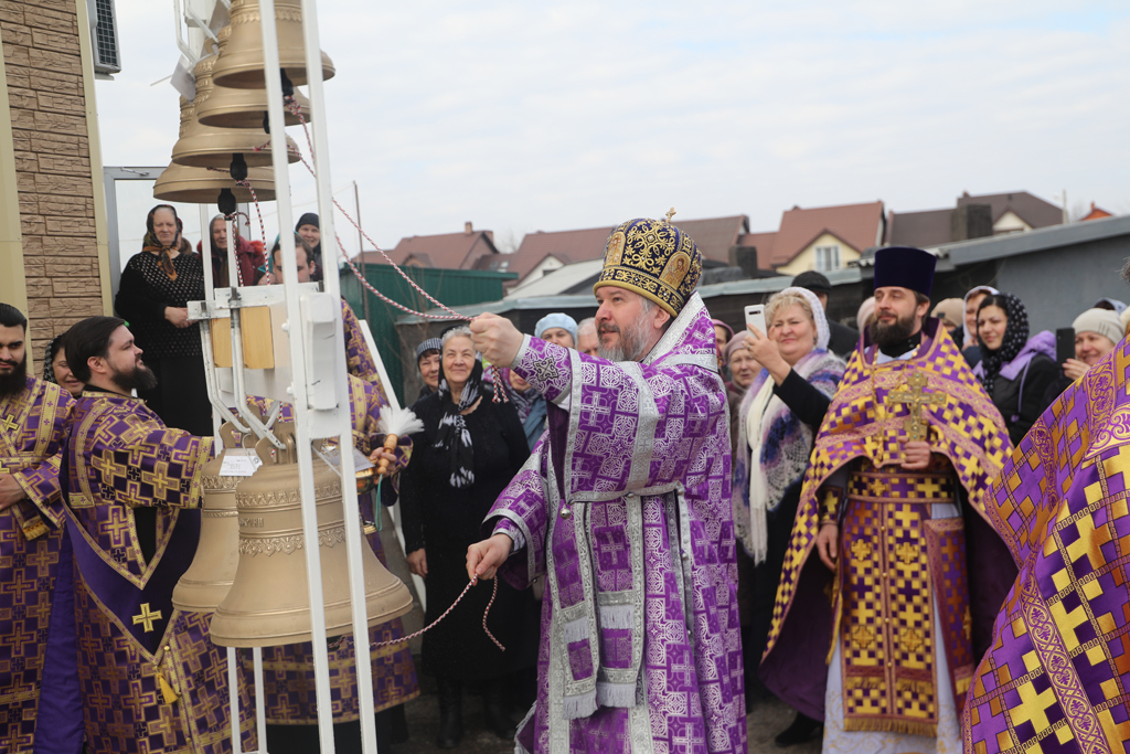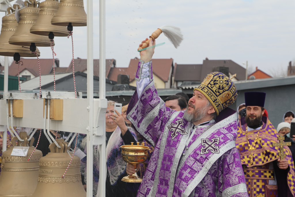 После Литургии Преосвященнейший епископ Симон совершил чин освящения колоколов на церковном подворье. В молитвах этого чина призывается благодать Святого Духа, звучат прошения о том, чтобы через звон колоколов верующие побуждались к молитве, укреплялись в борьбе с лукавыми наветами.