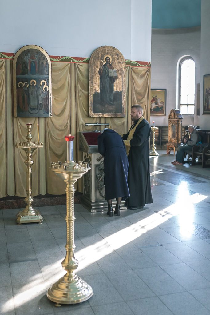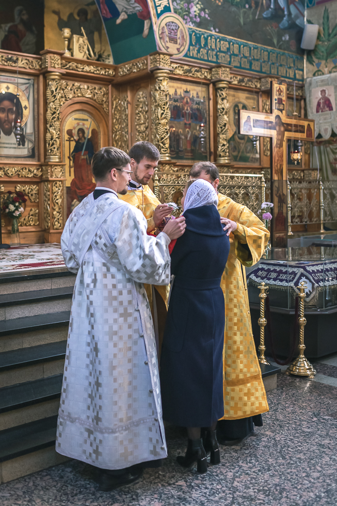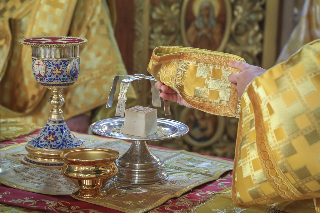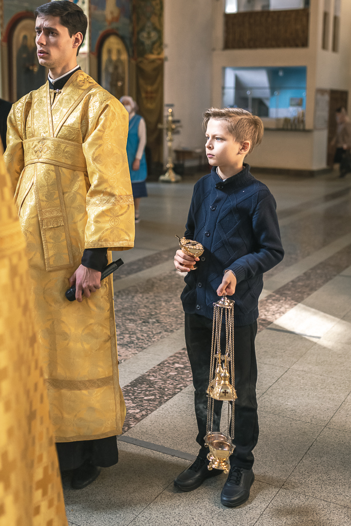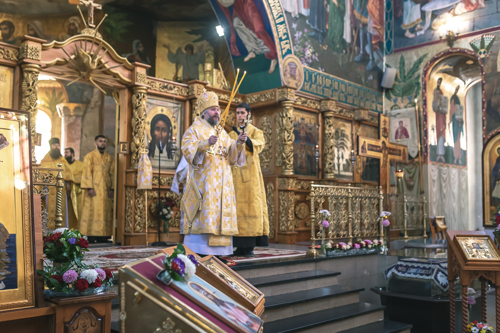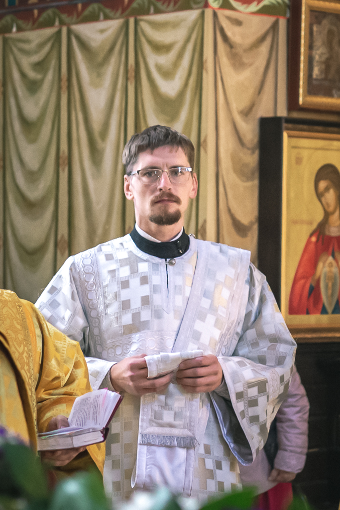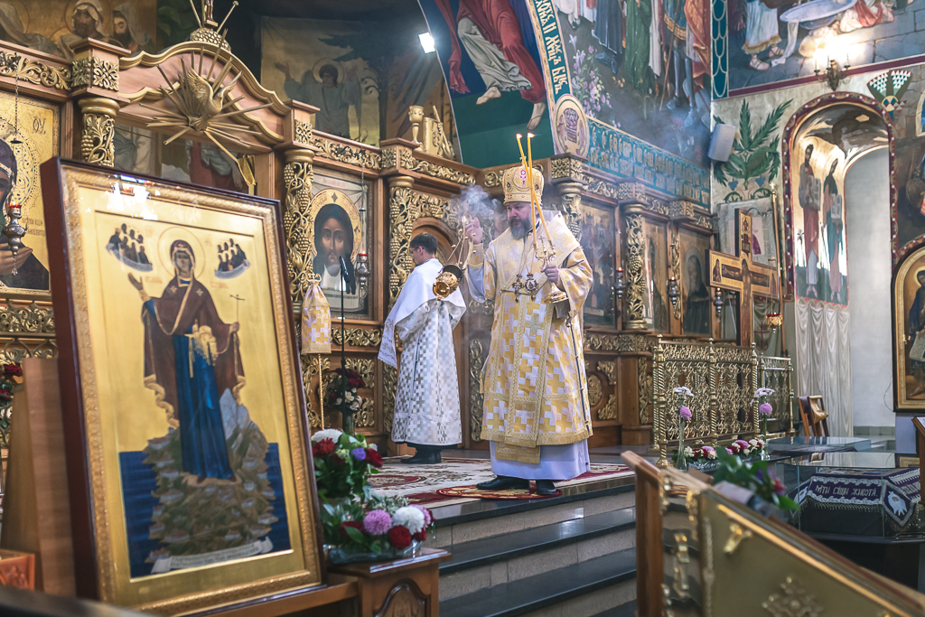 Его Преосвященству сослужили настоятель собора иерей Александр Теличкин, иерей Даниил Зырянов, диакон Трофим Осяк, диакон Никита Осипов, диакон Андрей Яненко, диакон Алексий Дмитриенко.