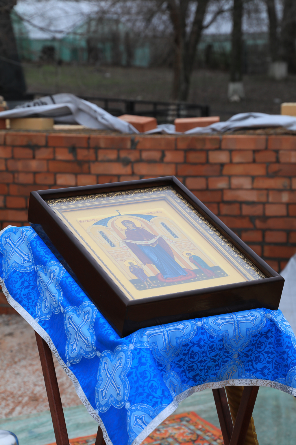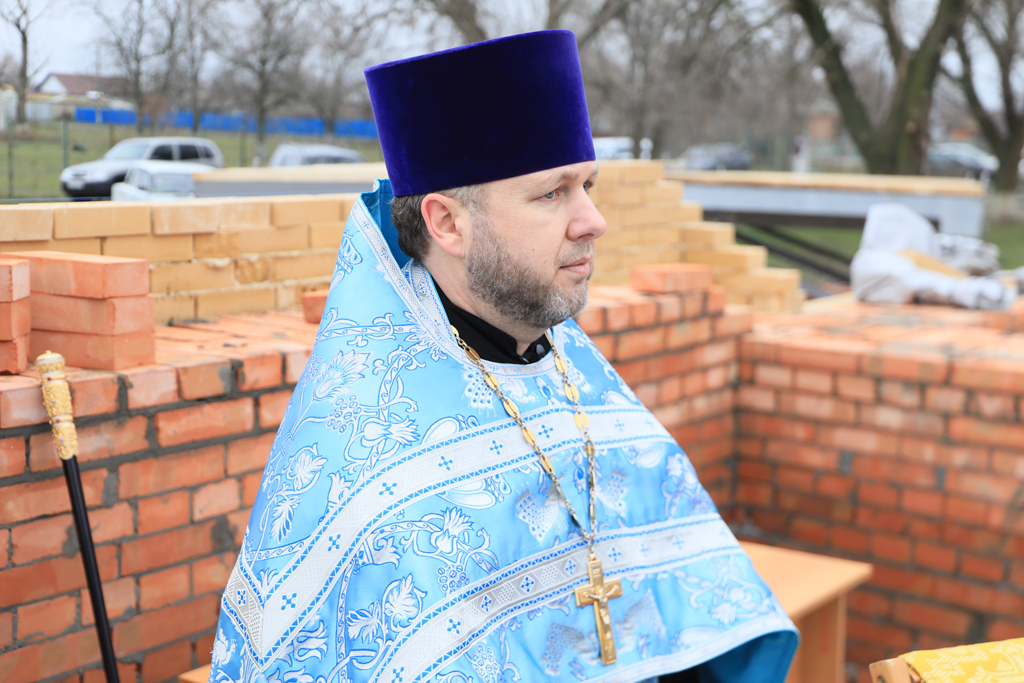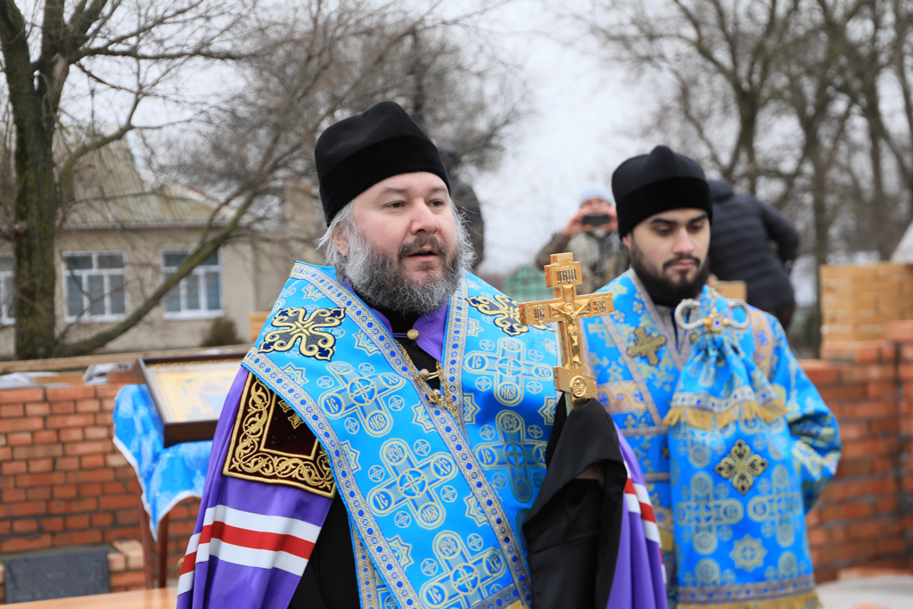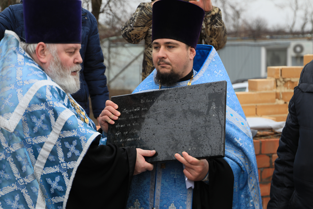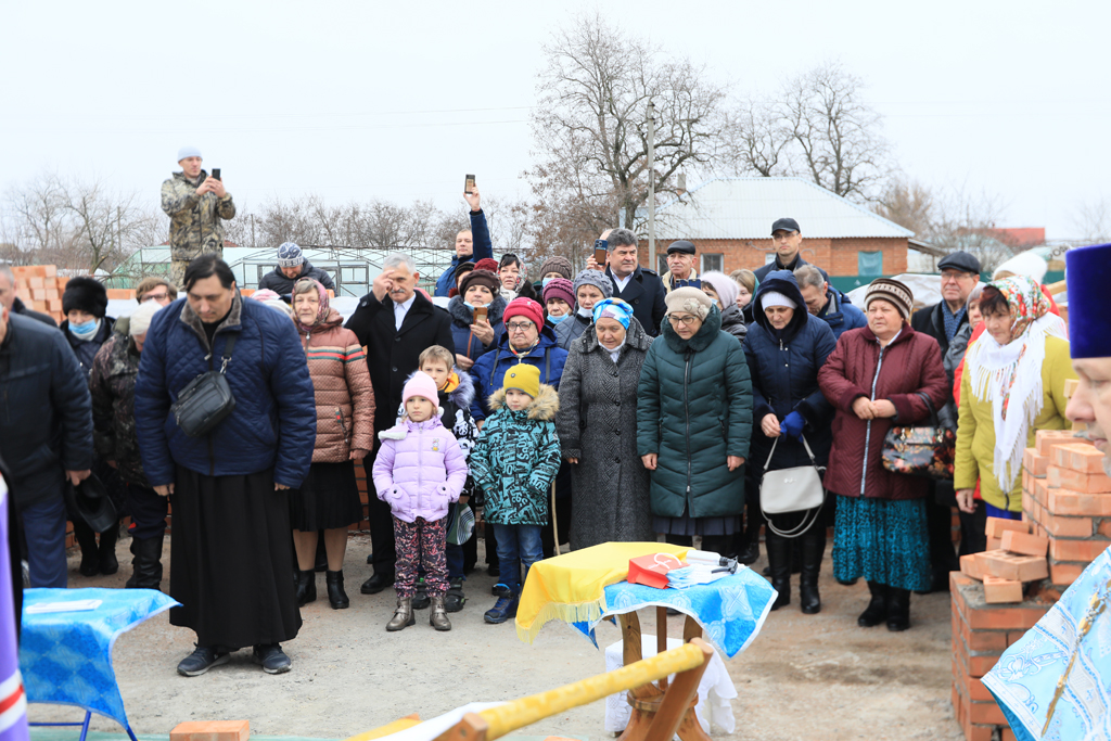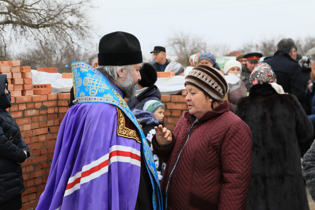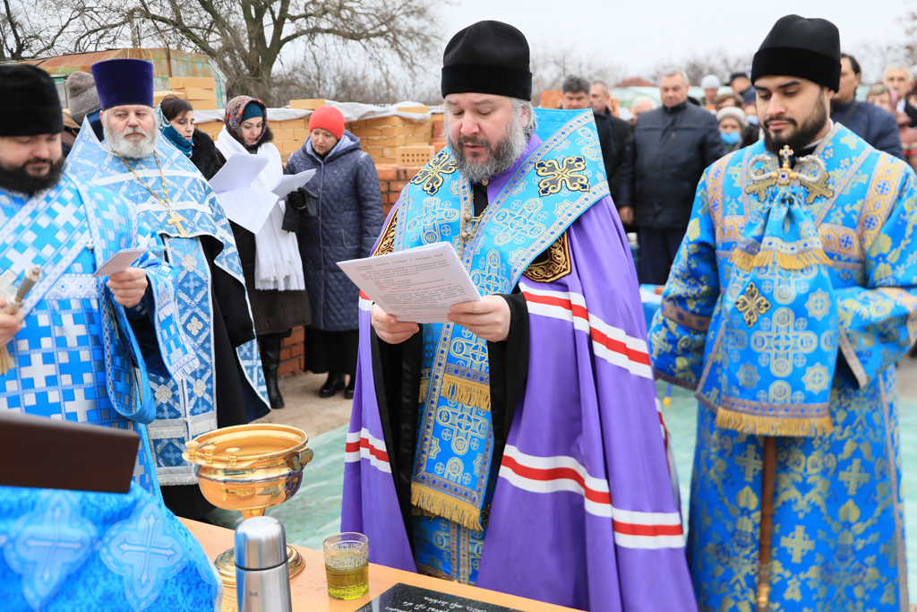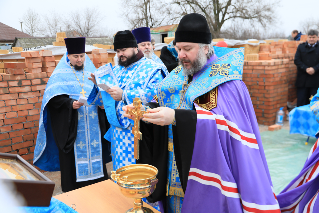 На месте строительства епископ Шахтинский и Миллеровский Симон совершил молитвенный чин на основание церкви. Вместе с архиереем молились настоятель храма Рождества Пресвятой Богородицы хутора Ажинов иерей Евгений Литвиненко, настоятель храма храм святой блаженной Ксении Петербургской поселка Садовый иерей Роман Мясников, настоятель храма Архистратига Михаила хутора Ёлкин иерей Анатолий Минаев, диакон Трофим Осяк, заместитель главы Администрации Багаевского района Александр Николаевич Мулько, благотворитель храма исполнительный директор «ИП Ермоченко» Александр Михайлович Костенков и православная община будущего храма.