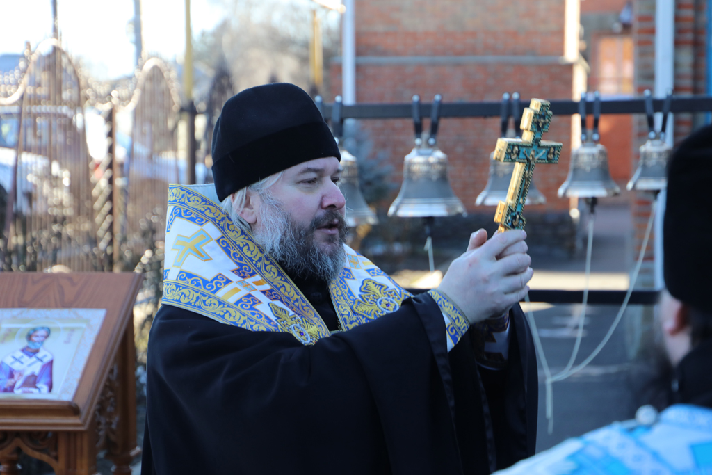 Вместе с архипастырем совершили молитву настоятель храма Архистратига Михаила протоиерей Сергий Яценко, диакон Трофим Осяк, прихожане и юные звонари.