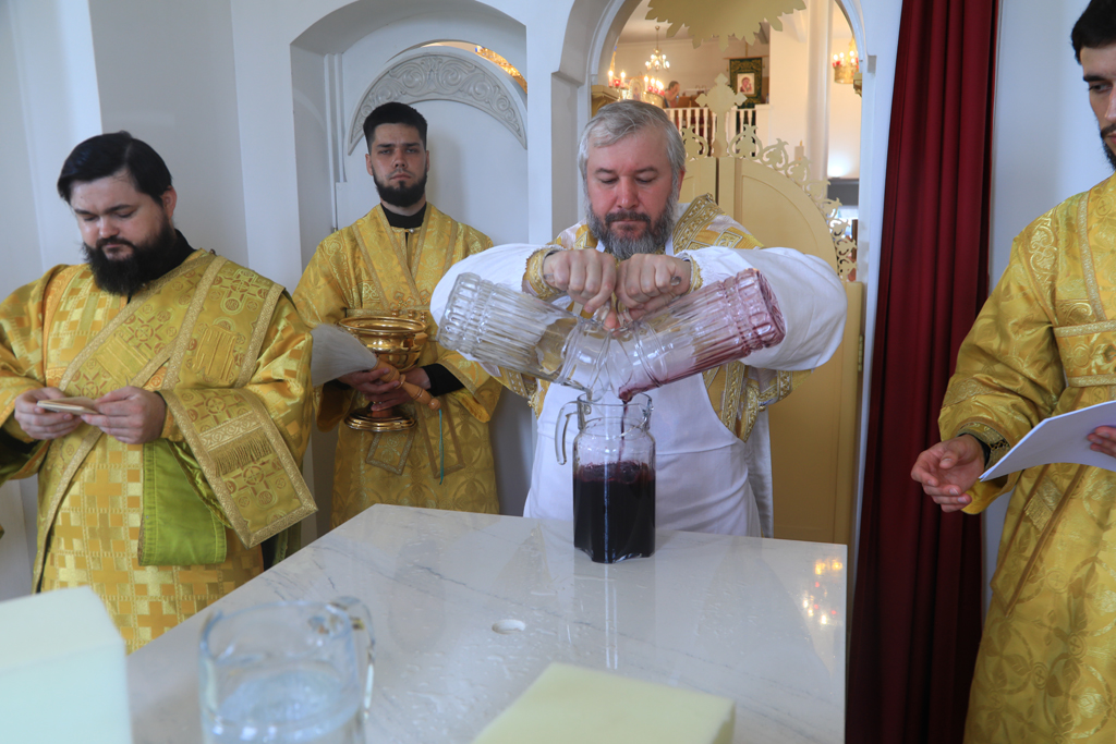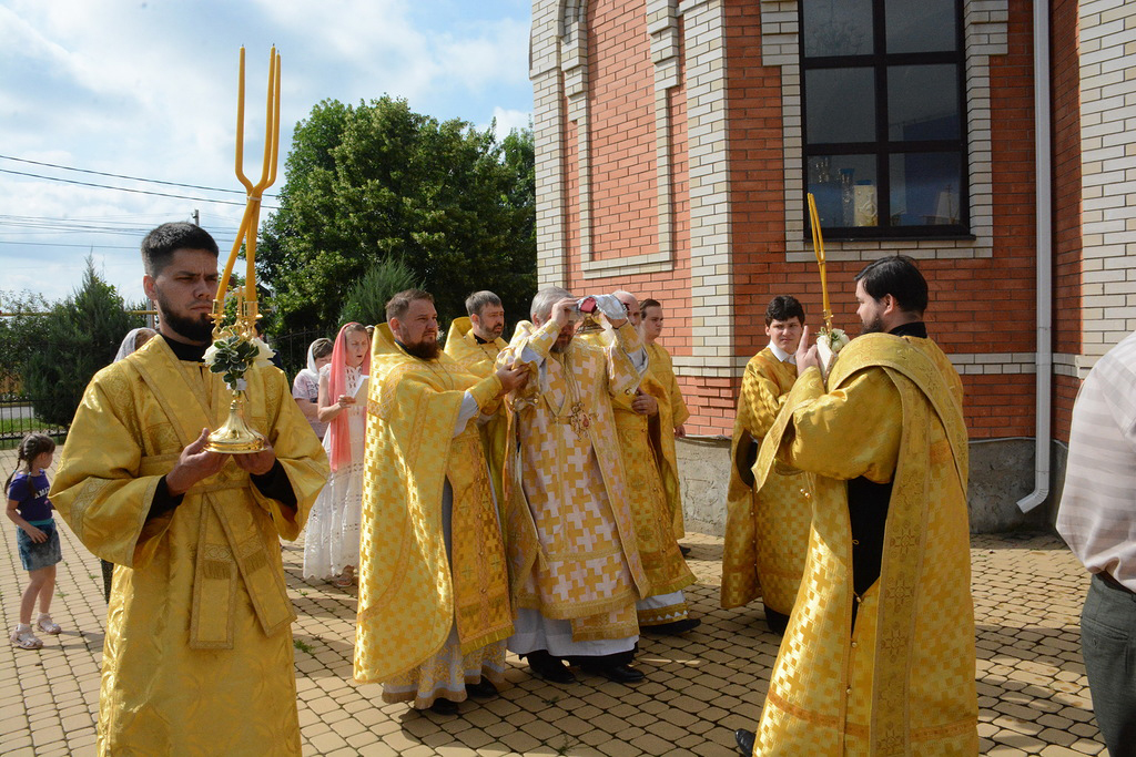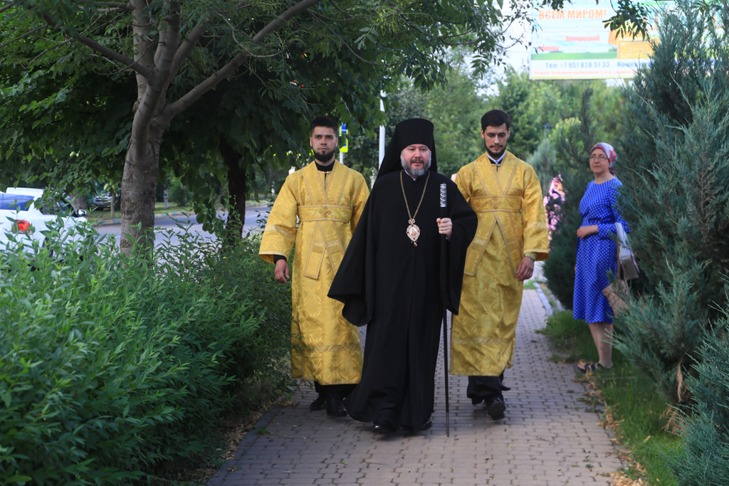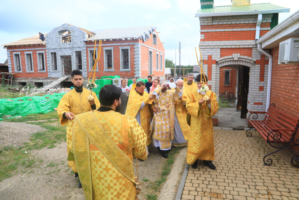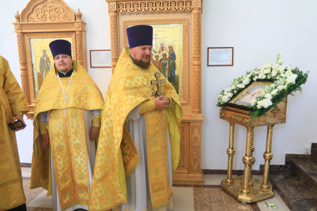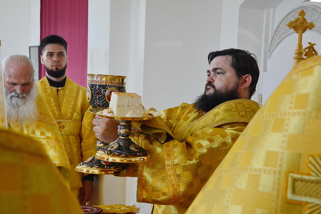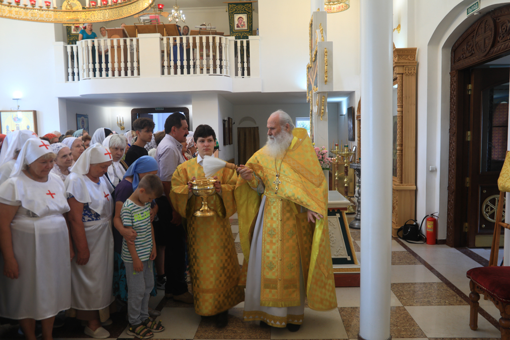 Архиерею сослужили духовник Шахтинской епархии протоиерей Александр Минин, настоятель Державного храма иерей Владимир Татаркин, настоятель храма в честь образа Пресвятой Богородицы Одигитрия пос. Таловый иерей Андрей Ковалев, настоятель храма Успения Пресвятой Богородицы ст. Калитвенской иерей Игорь Лосев, диакон Трофим Осяк.