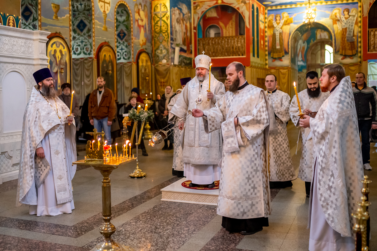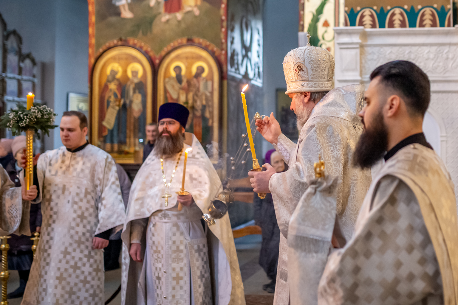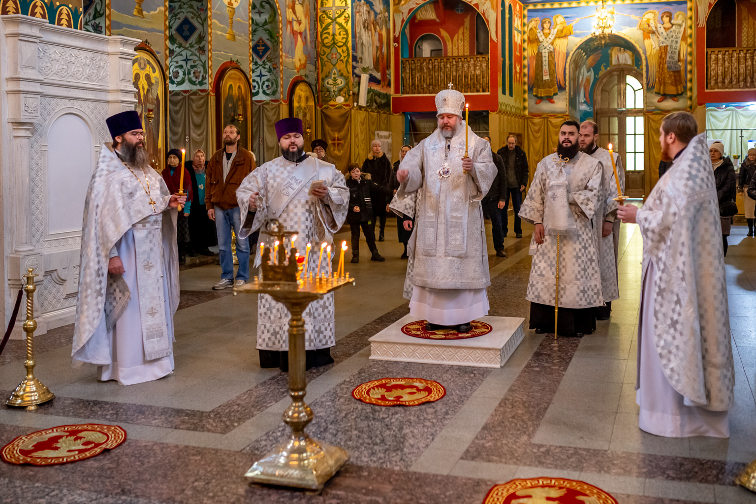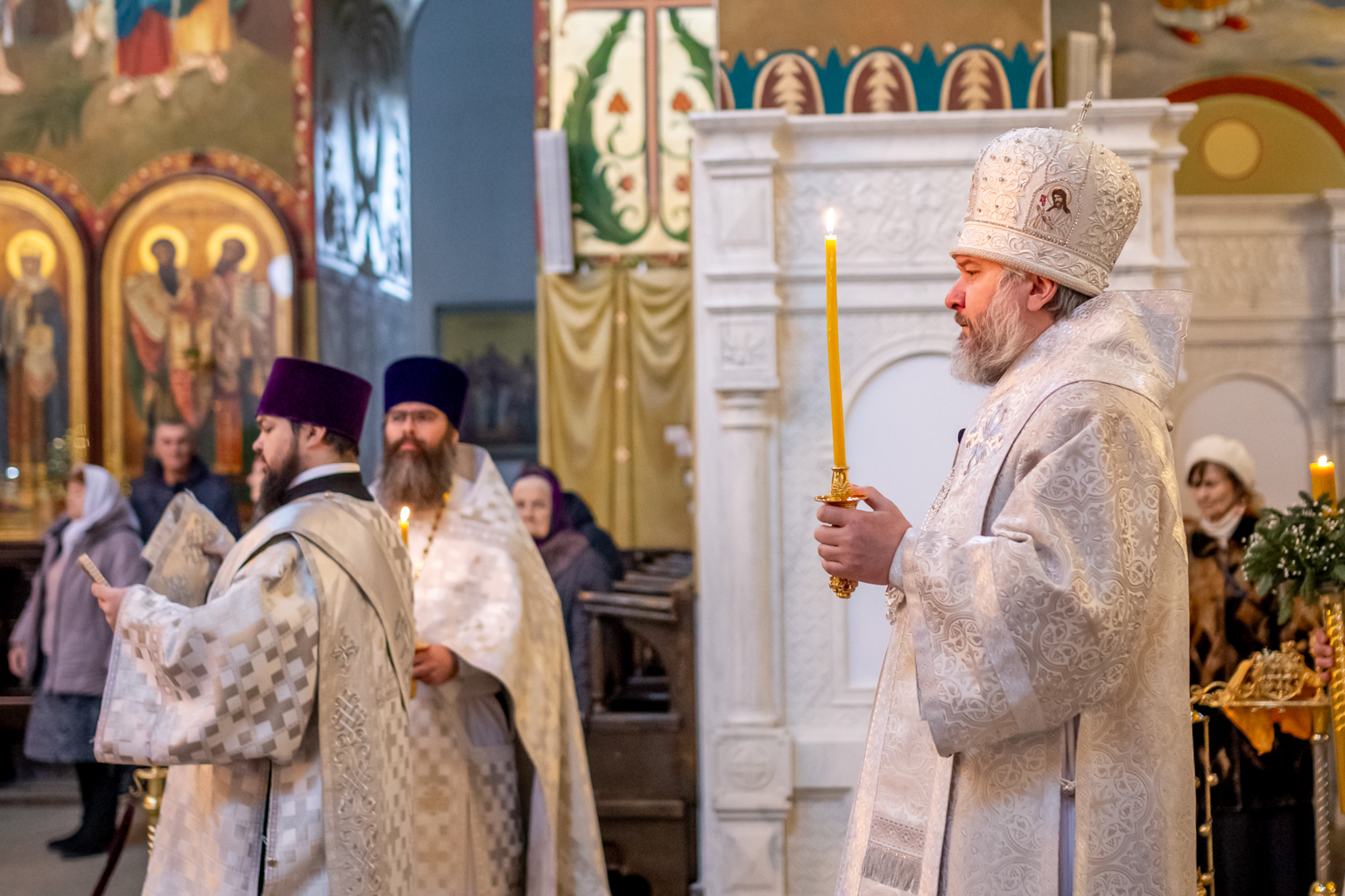 Вместе с архиереем молились духовенство и прихожане собора.