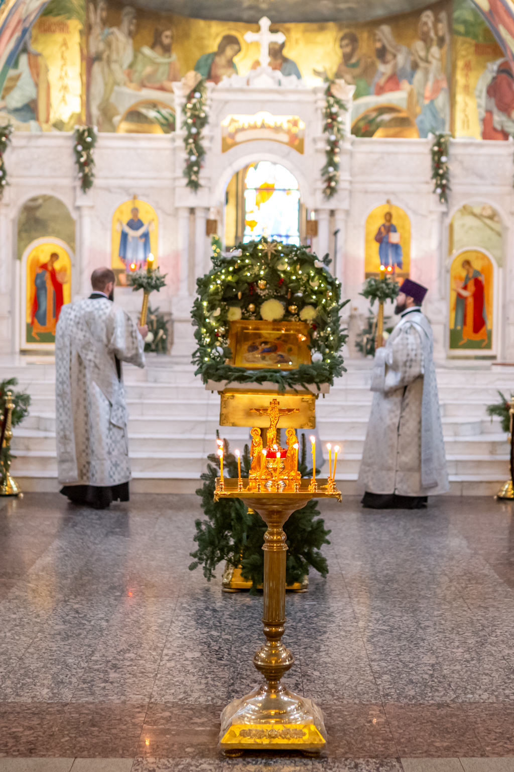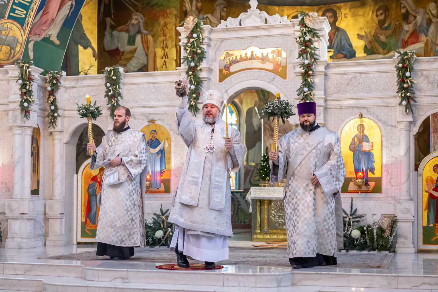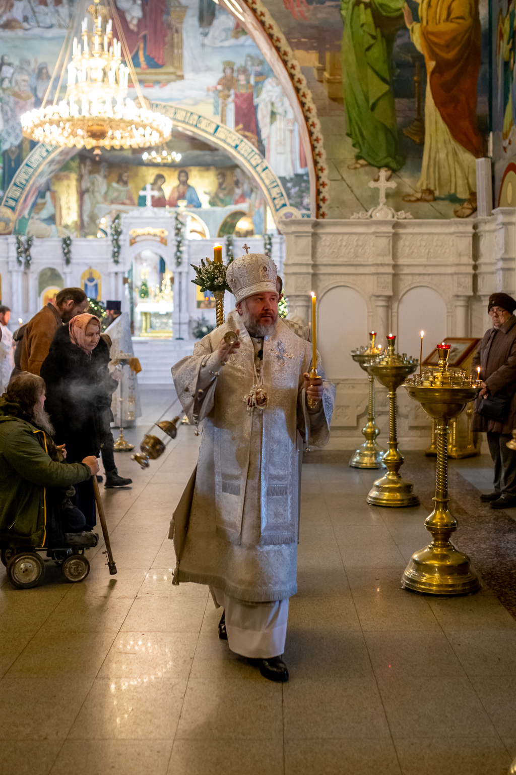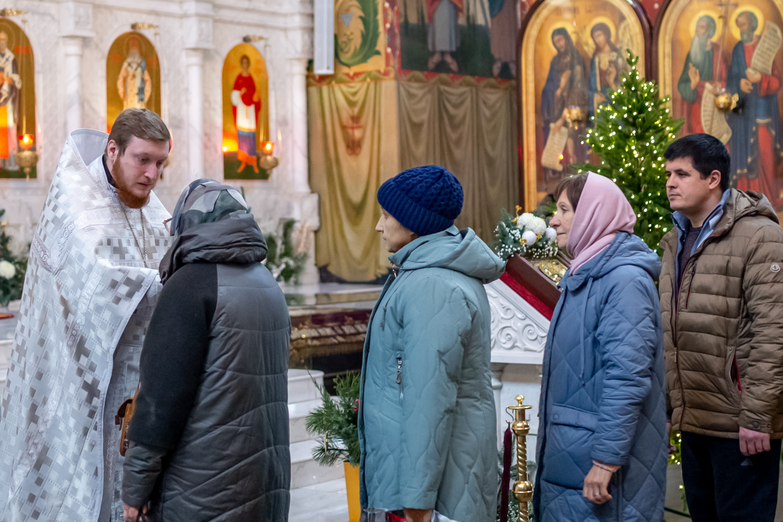 Вместе с архиереем молились духовенство и прихожане собора.