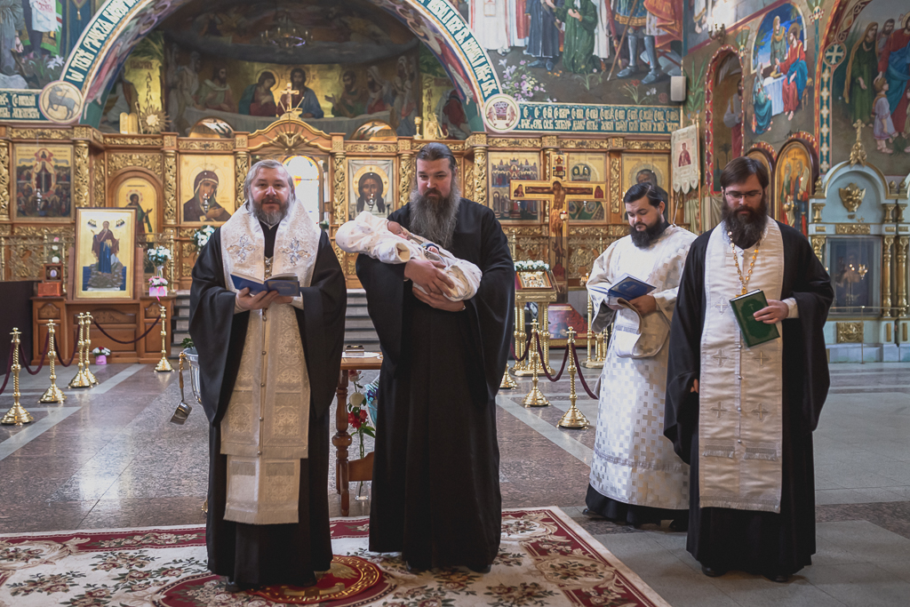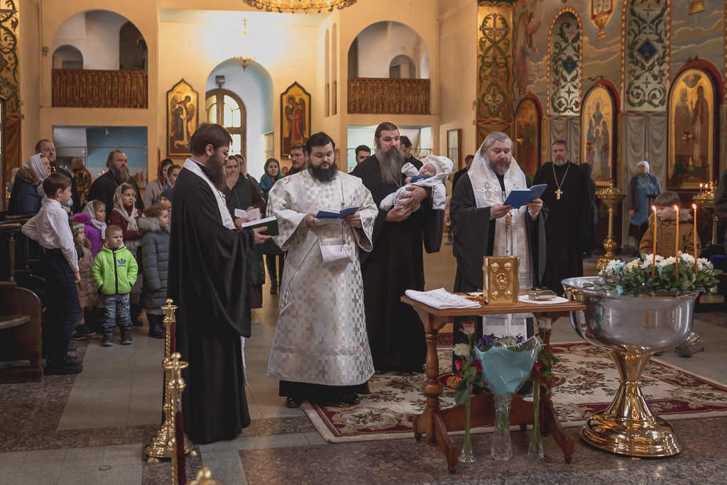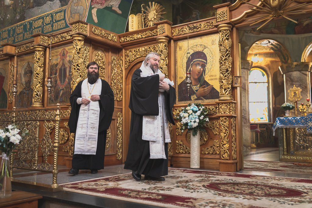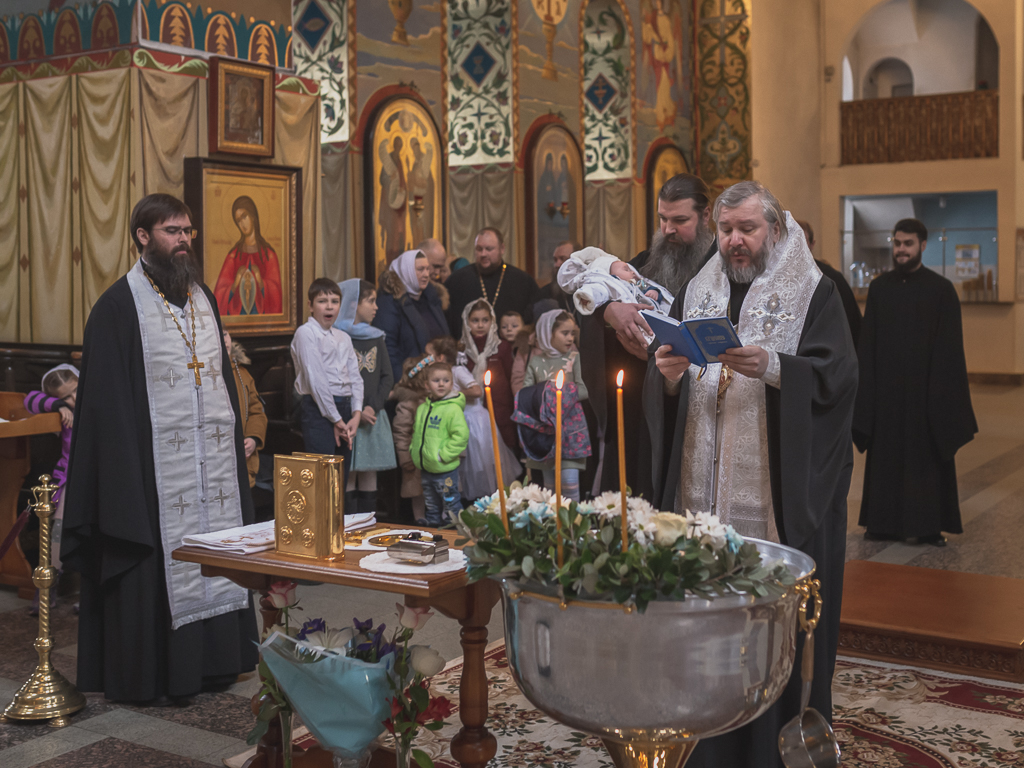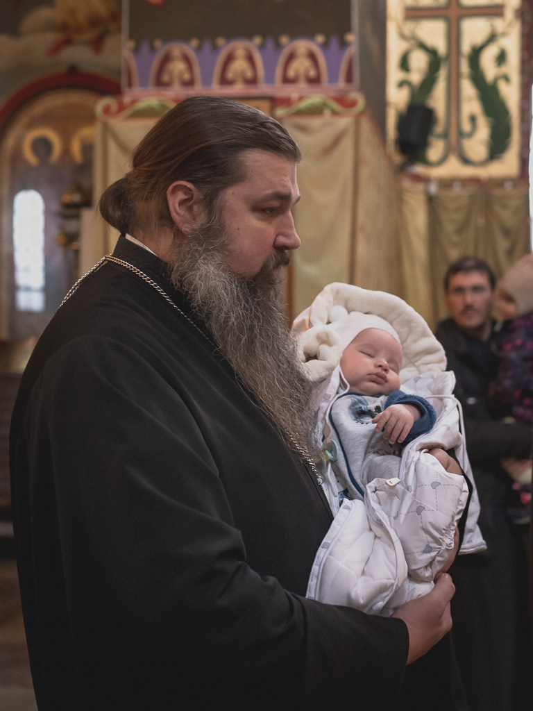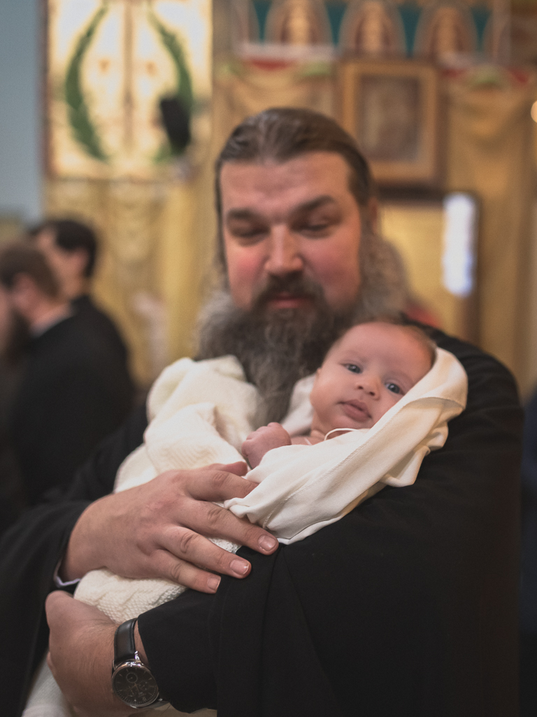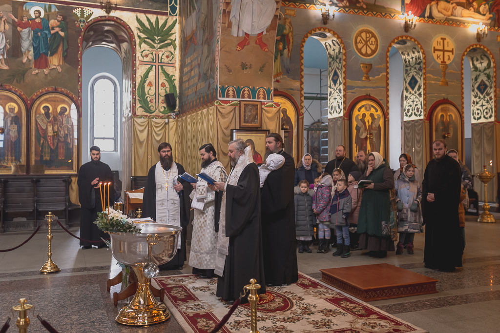 В вместе с архиереем молились родители, восприемник младенца и родственники.