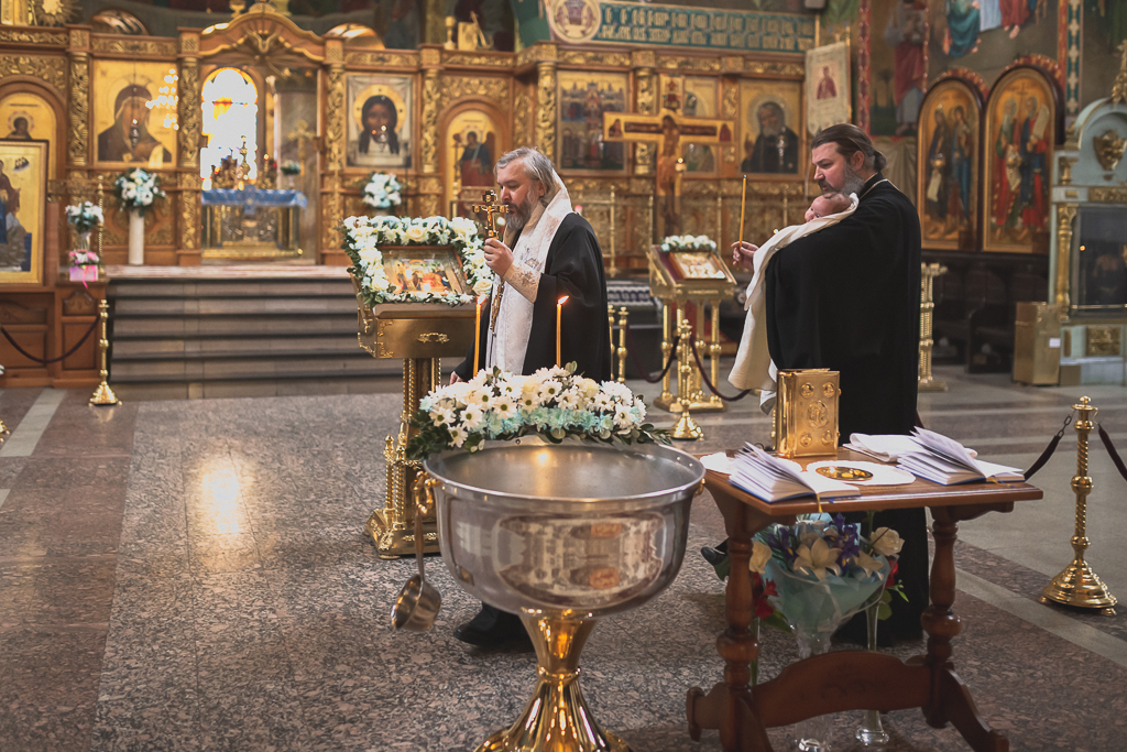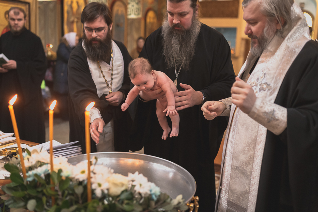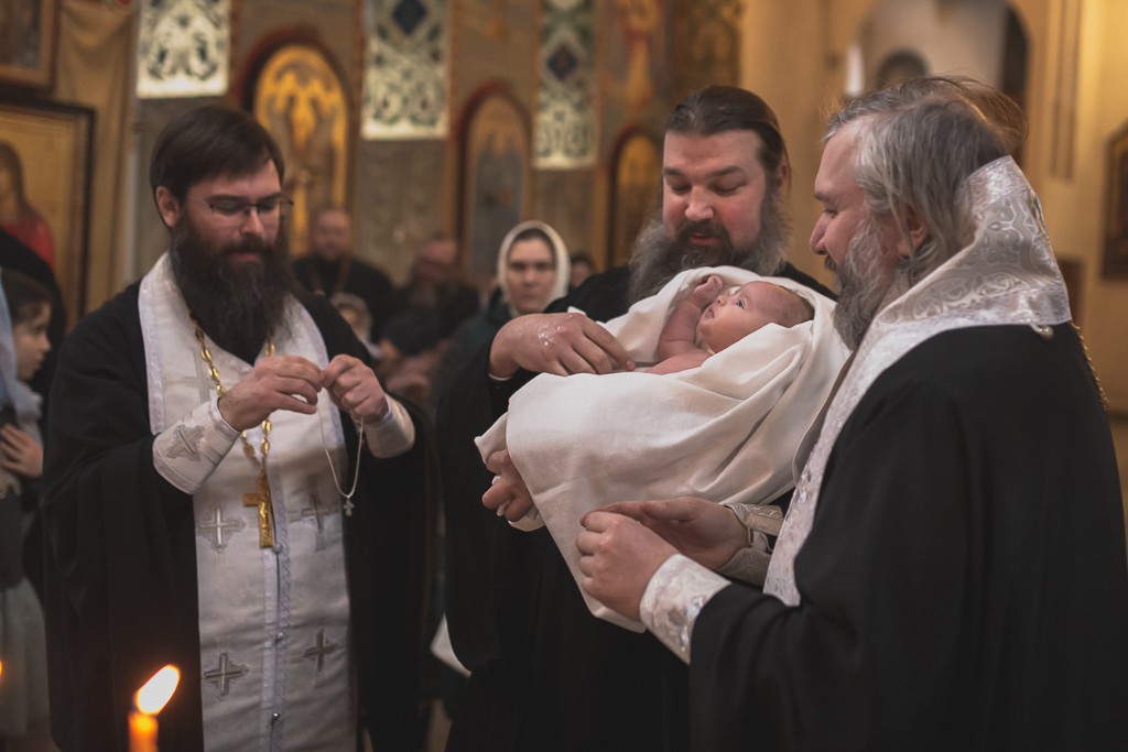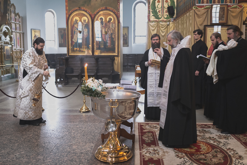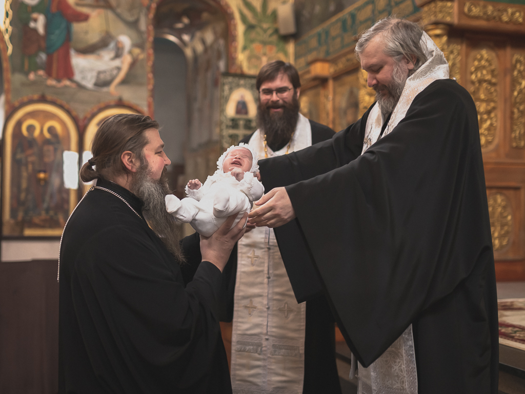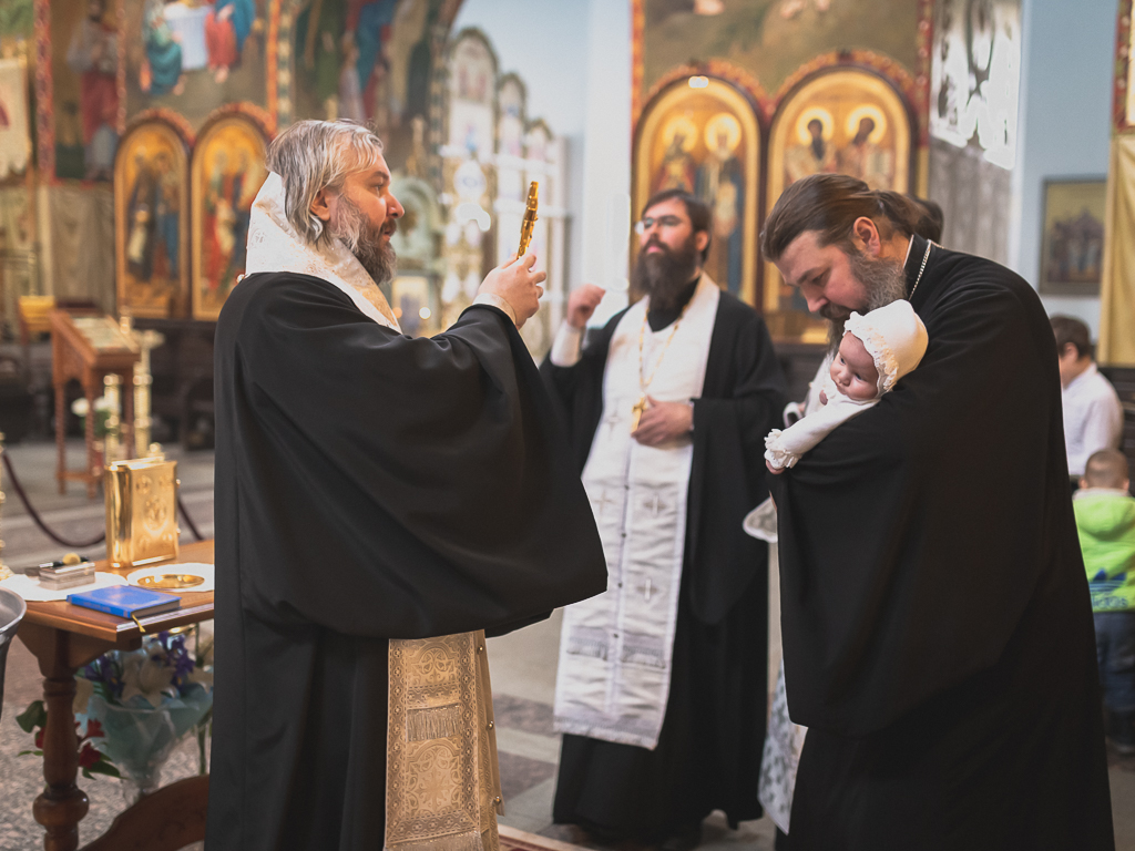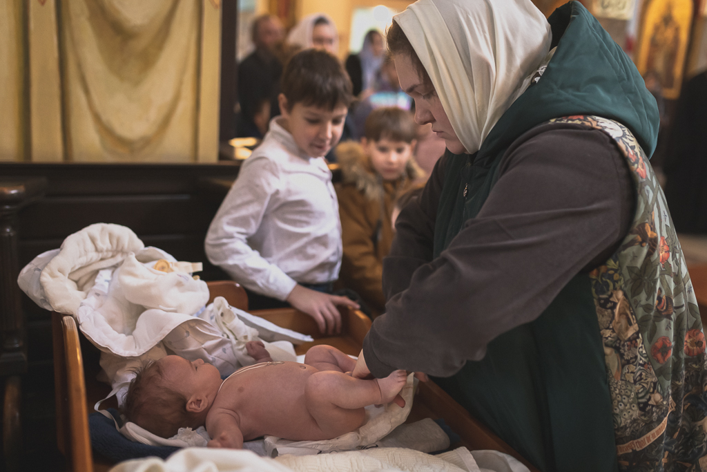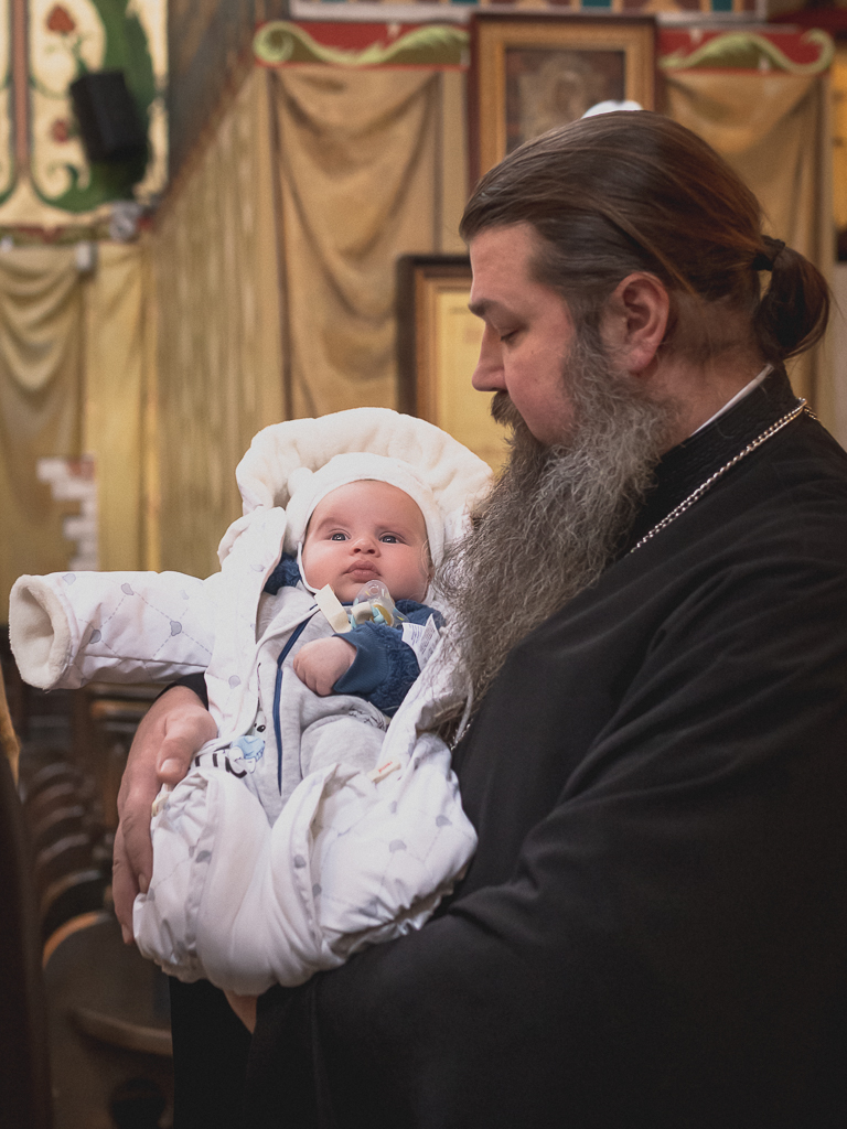 В вместе с архиереем молились родители, восприемник младенца и родственники.