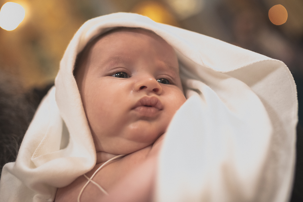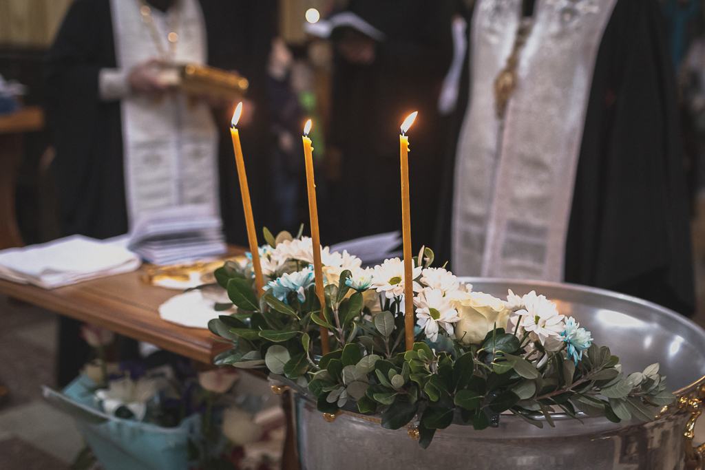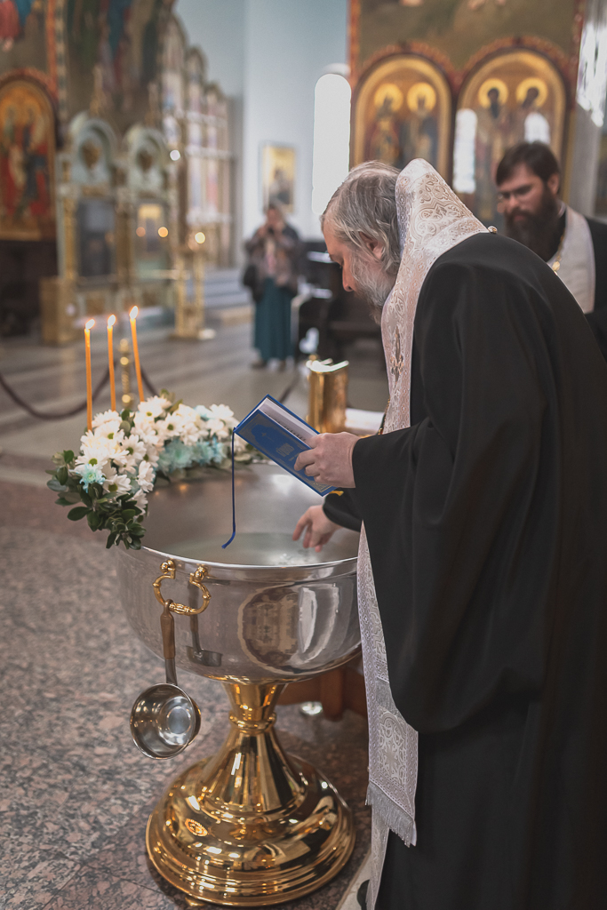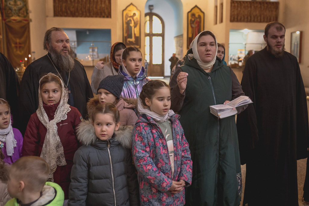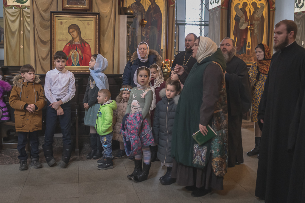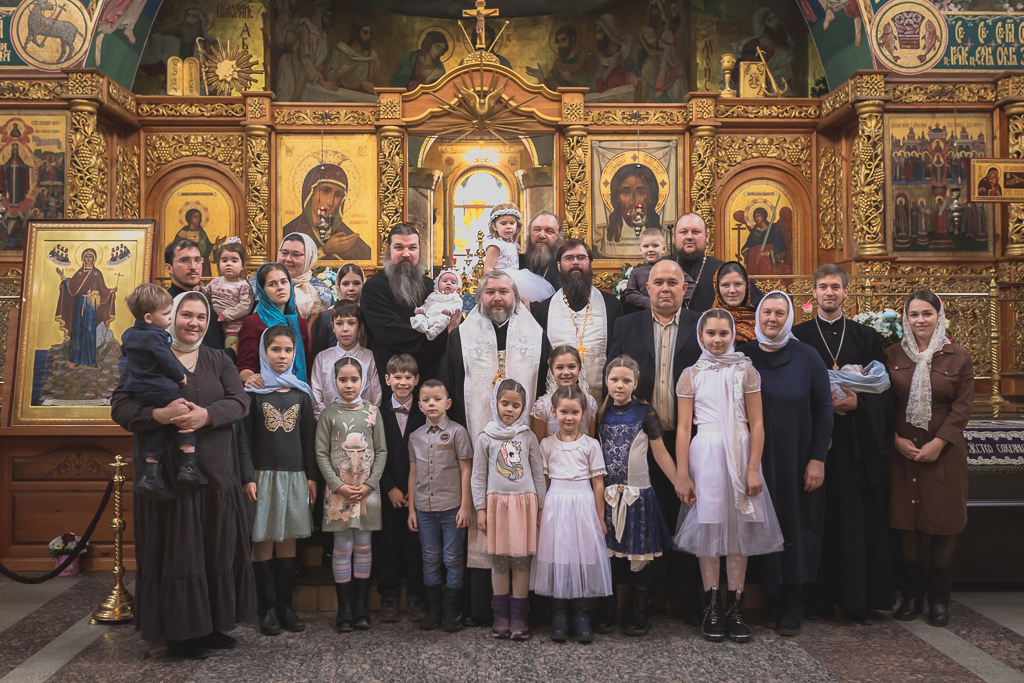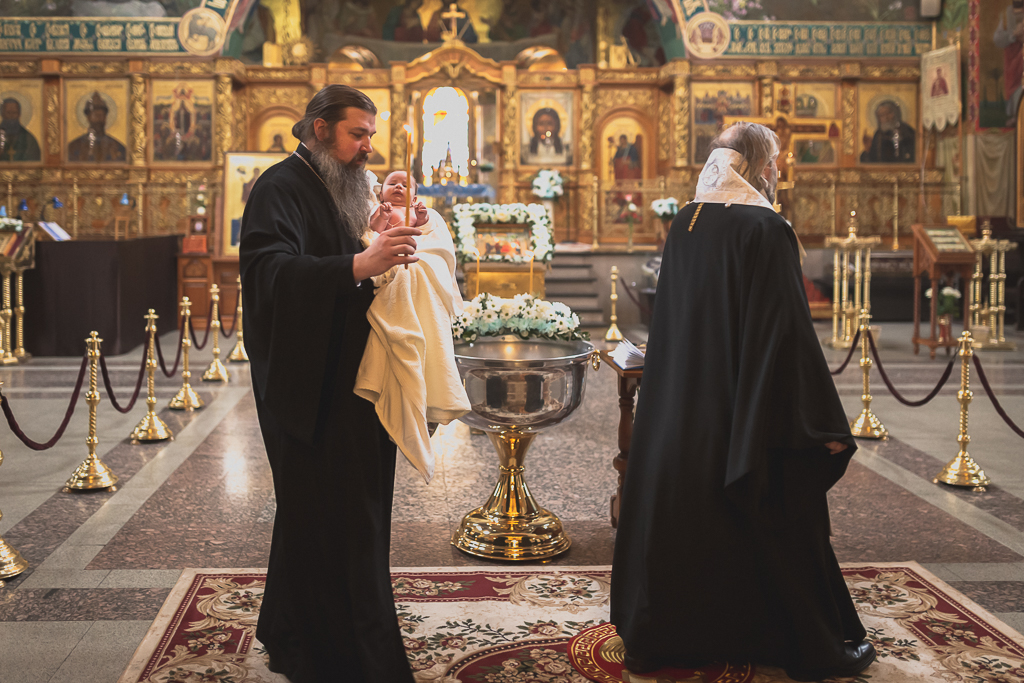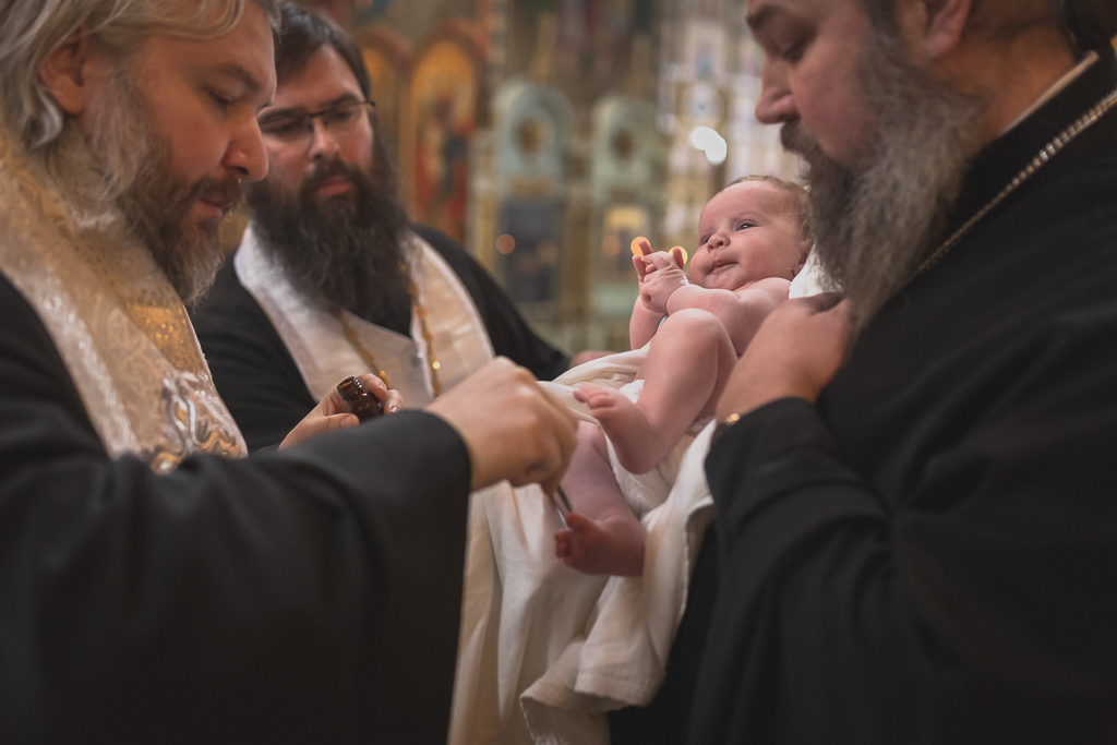 В вместе с архиереем молились родители, восприемник младенца и родственники.