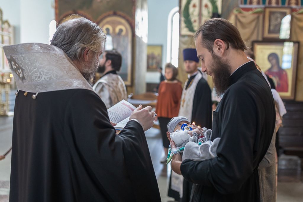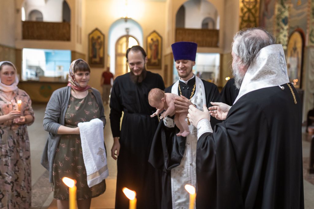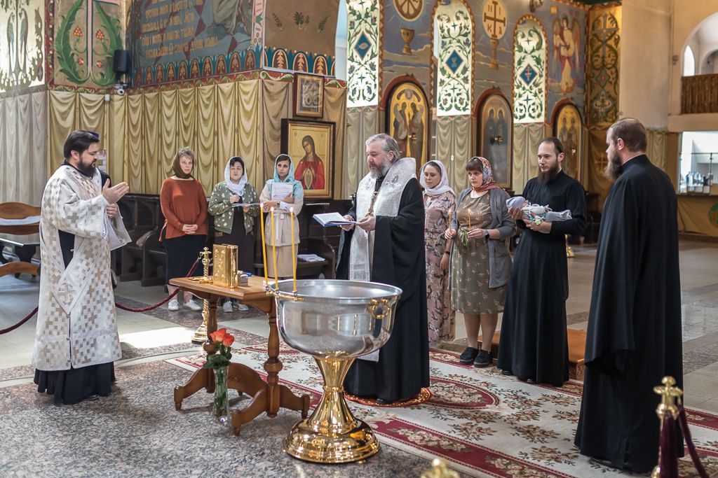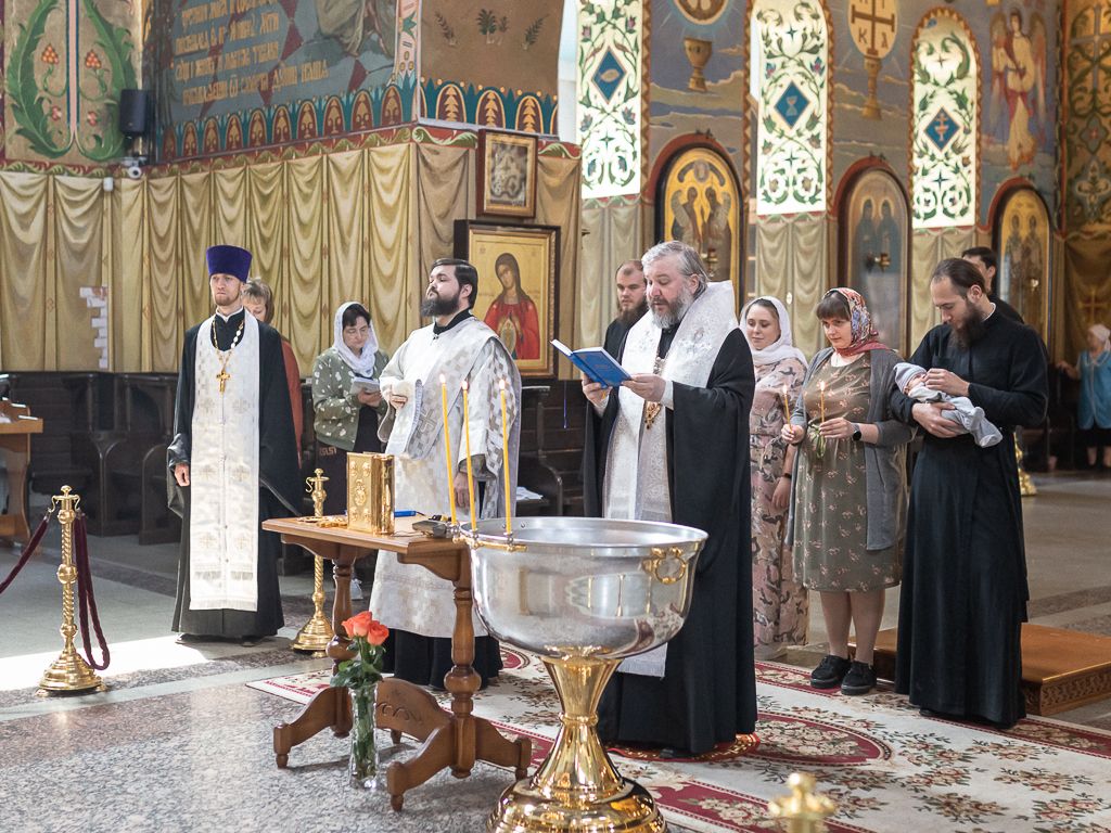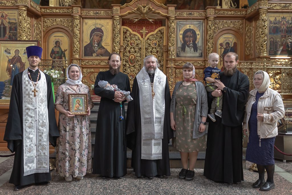 Вместе с архиереем молились духовенство кафедрального собора, восприемники, родные и близкие семьи.