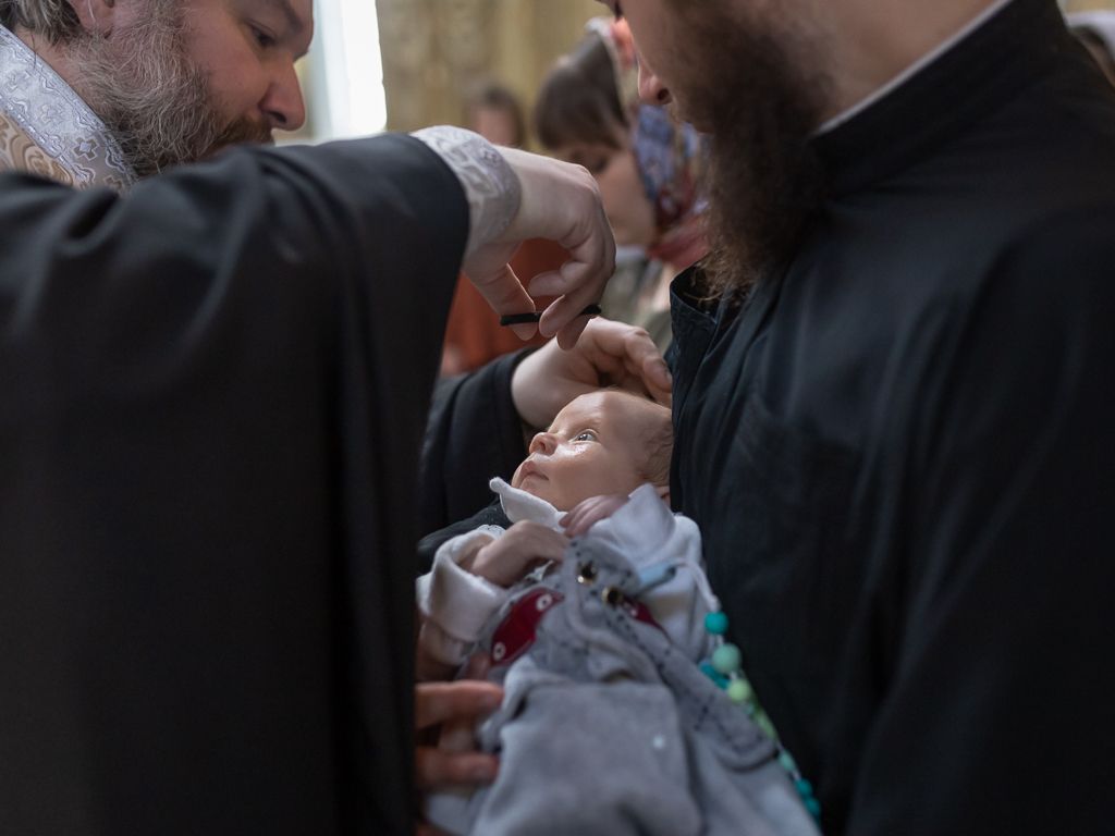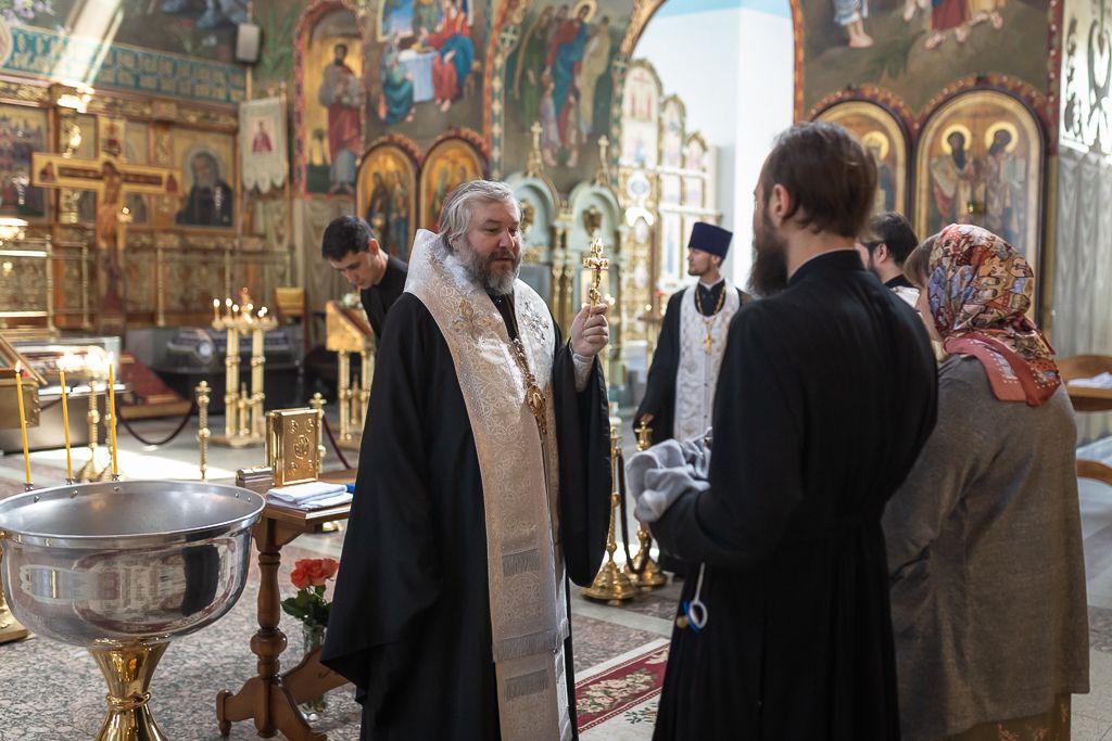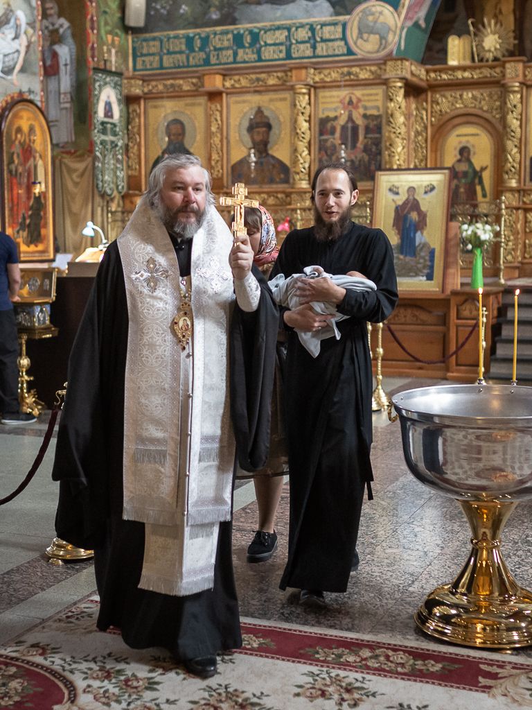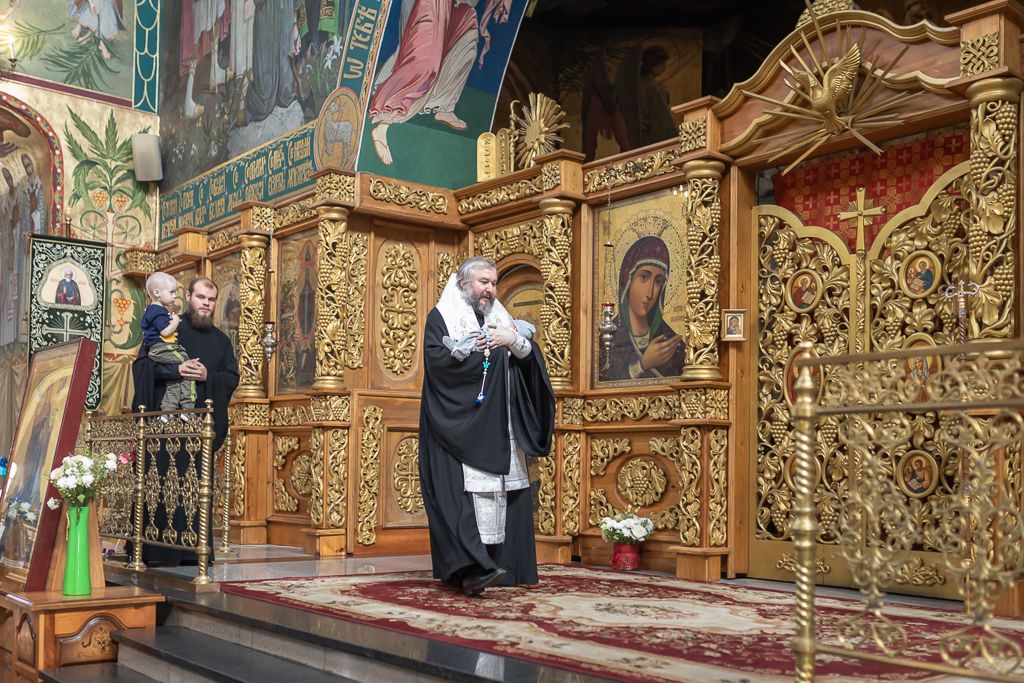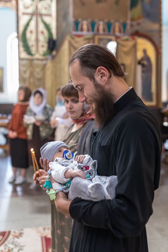 Вместе с архиереем молились духовенство кафедрального собора, восприемники, родные и близкие семьи.
