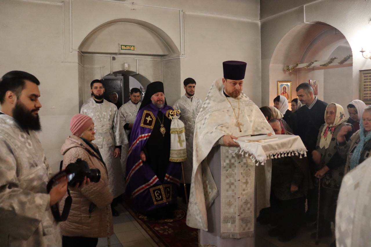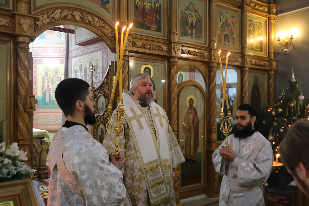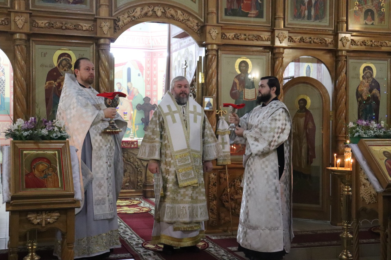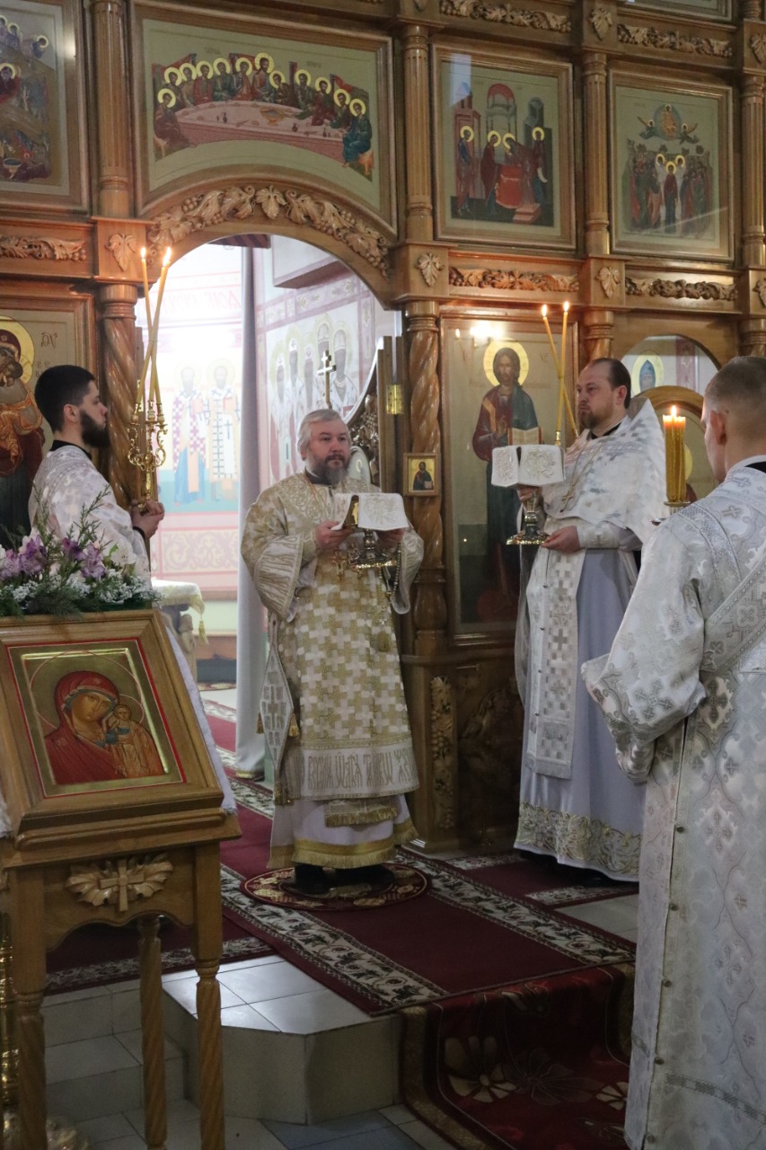Его Преосвященству сослужили благочинный приходов Новошахтинского округа, настоятель храма протоиерей Роман Амплеев, диакон Трофим Осяк и диакон Андрей Трошин.