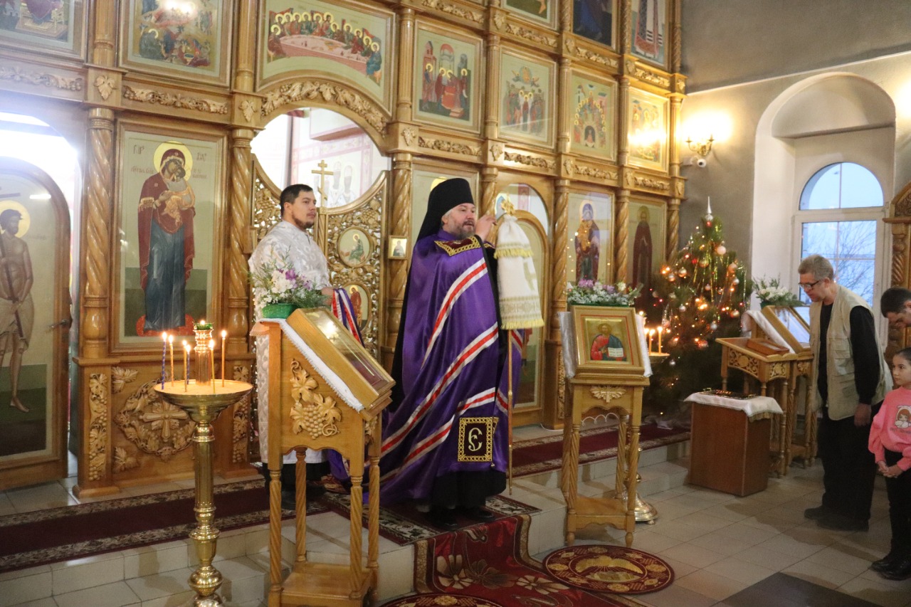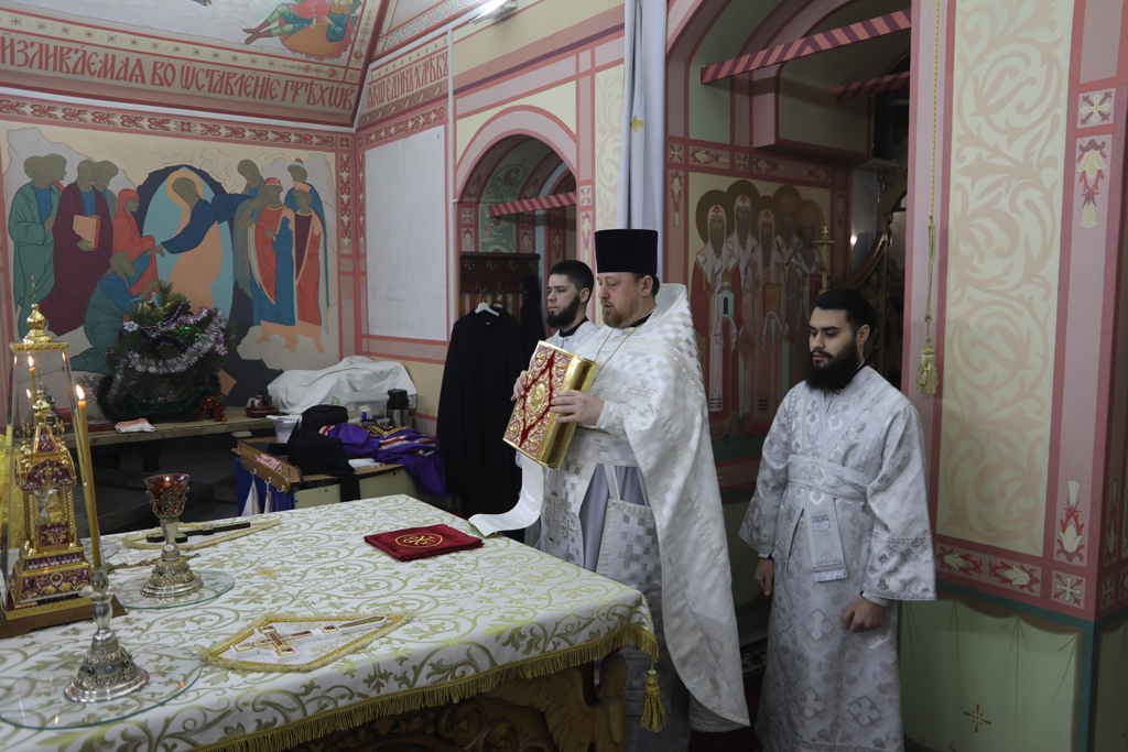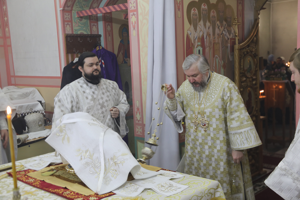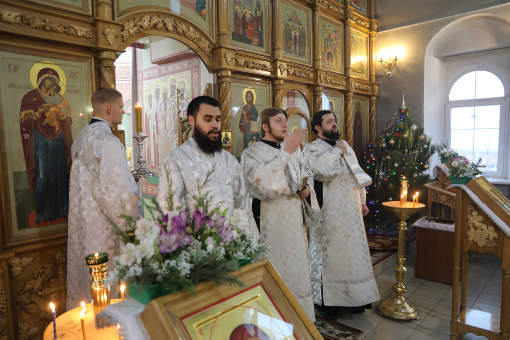 Его Преосвященству сослужили благочинный приходов Новошахтинского округа, настоятель храма протоиерей Роман Амплеев, диакон Трофим Осяк и диакон Андрей Трошин.