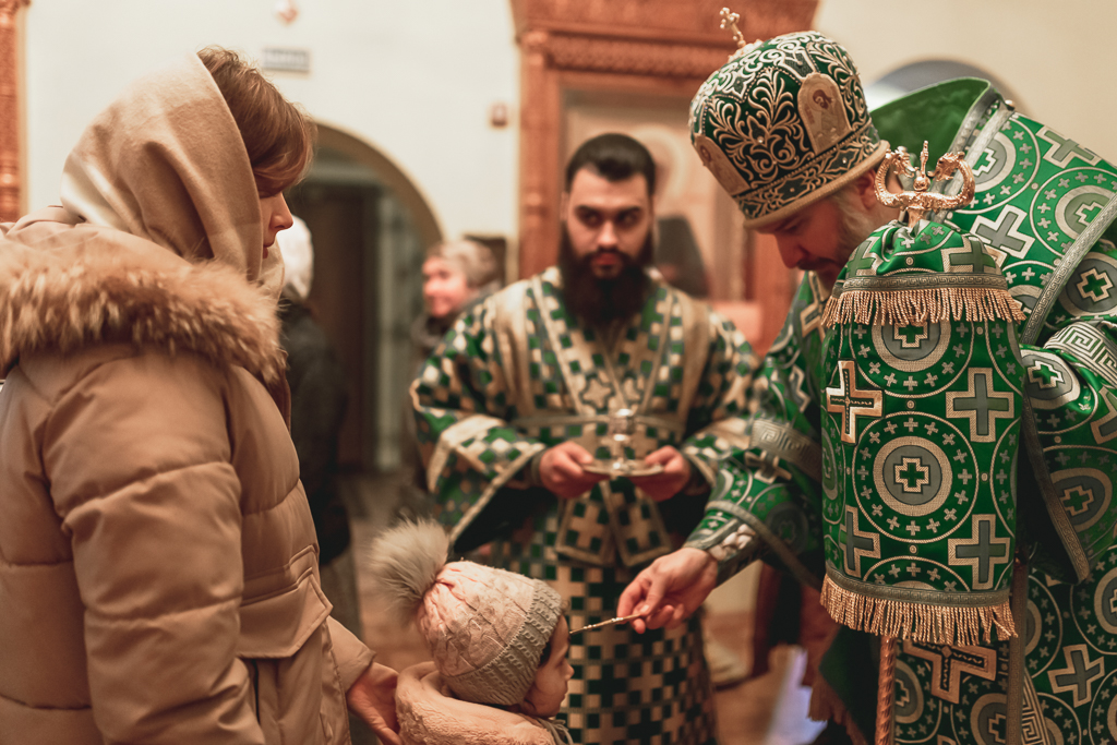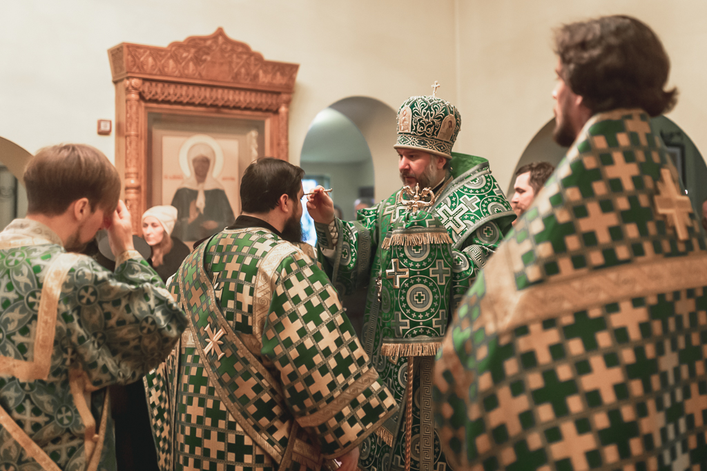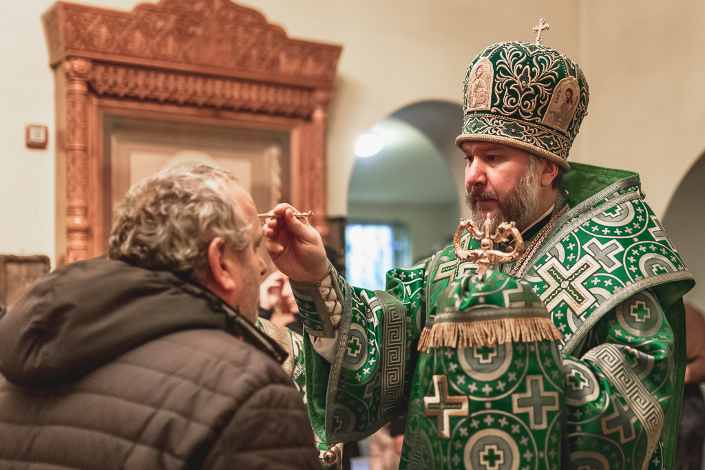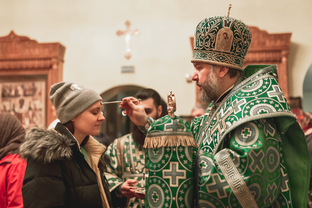 На всенощном бдении владыка Симон помазал прихожан освященным елеем.