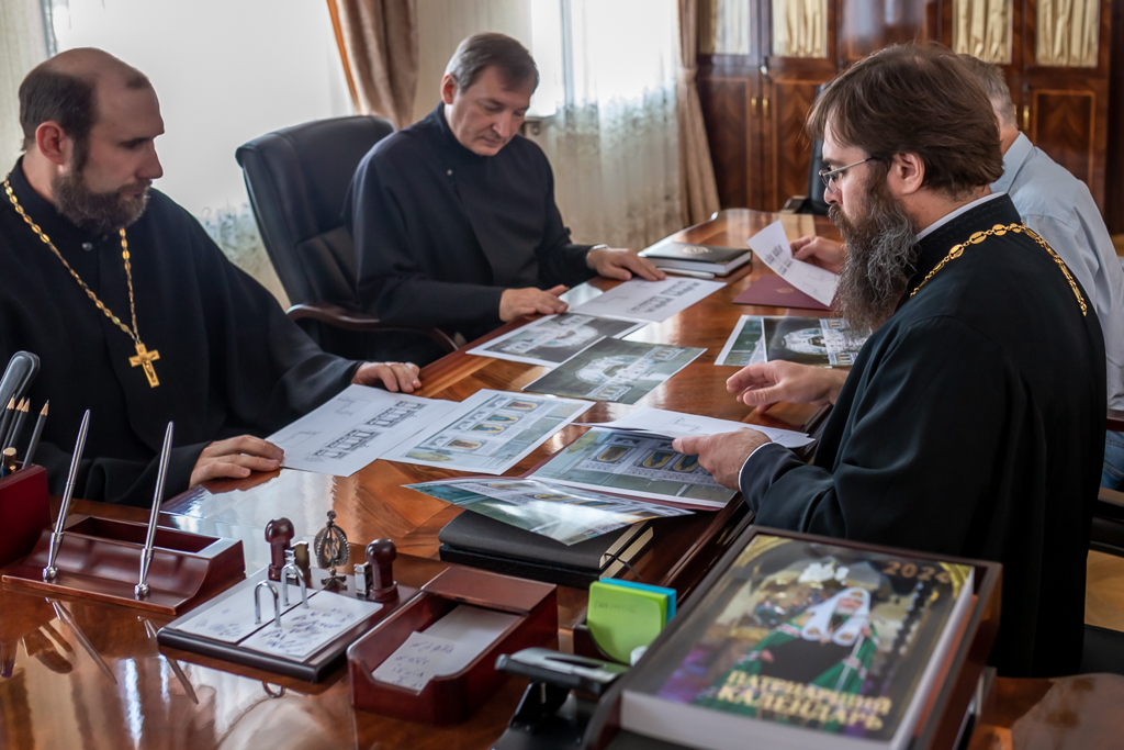 Комиссия ознакомилась с исполнением текущих проектов по строительству и реставрации храмов Шахтинской епархии и ознакомилась с новыми проектами, запланированными к исполнению на 2024 год. Один из них – замена пристенных киотов в Покровском кафедральном соборе города Шахты.