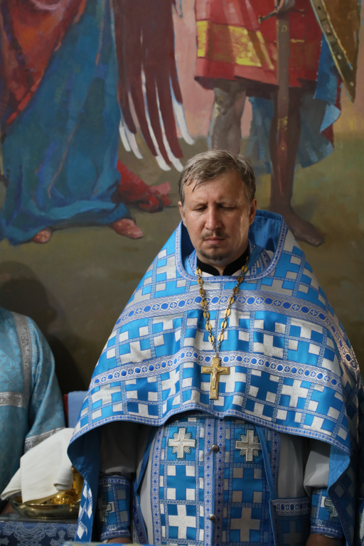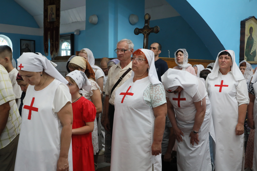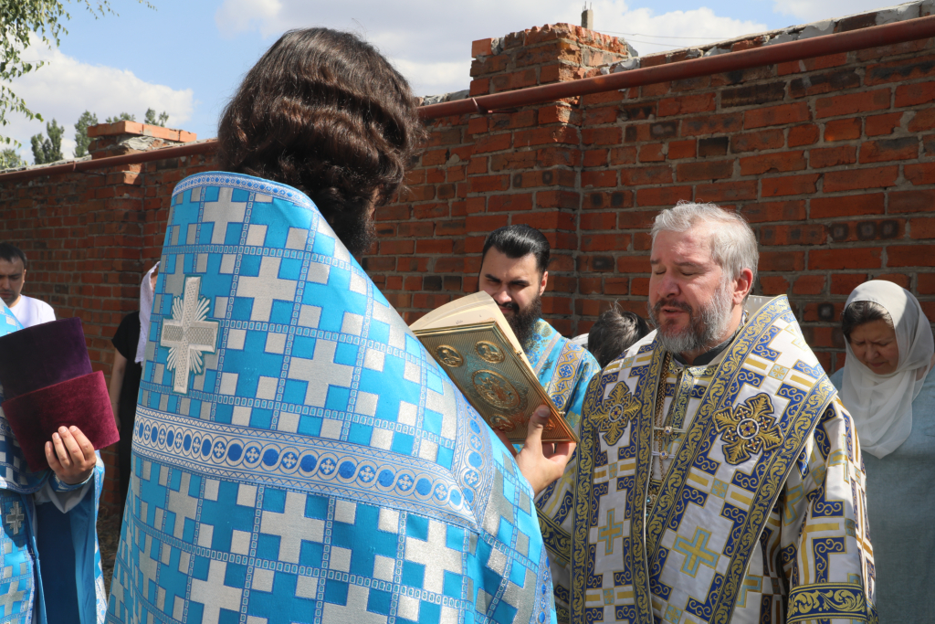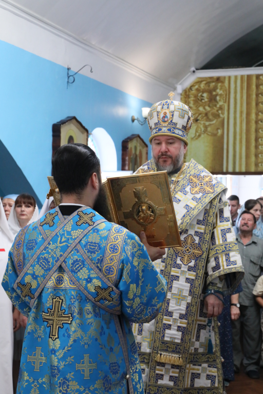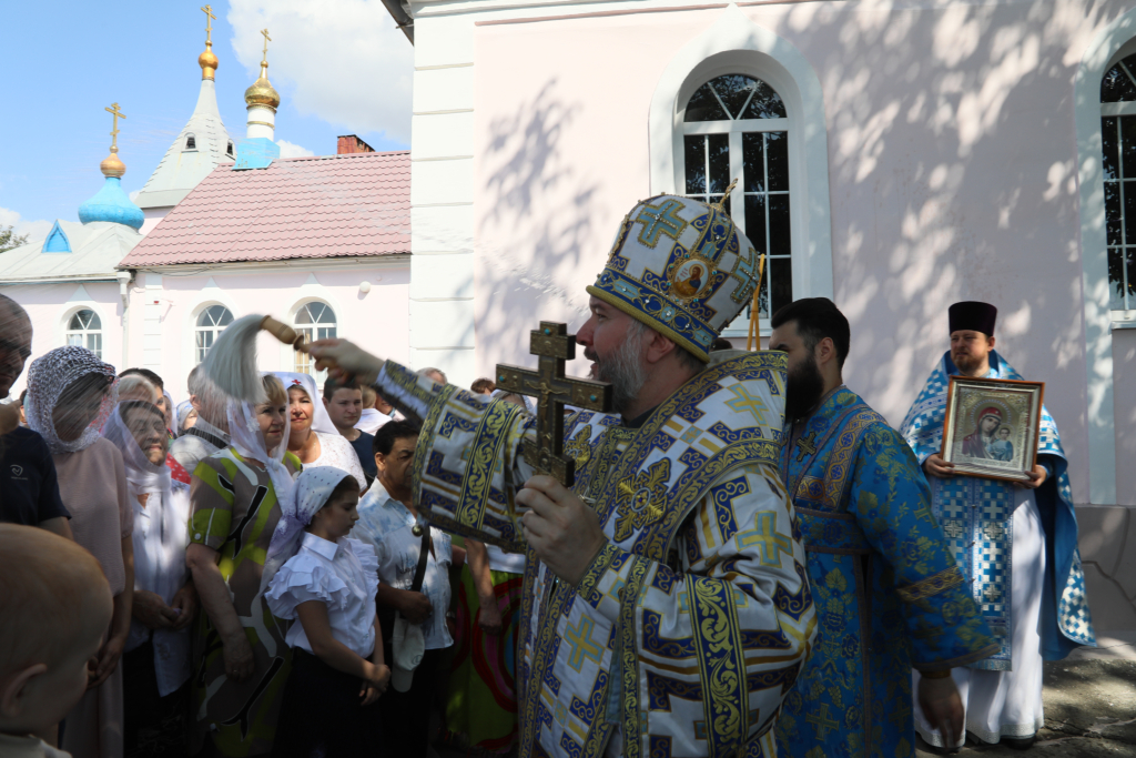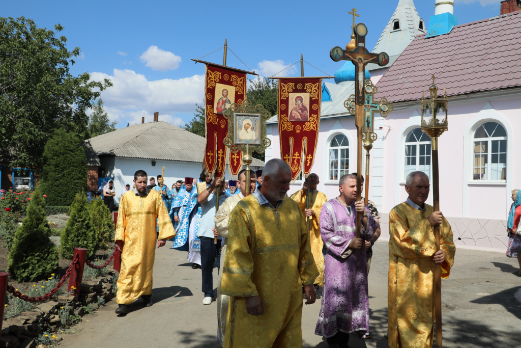 По завершении Литургии прихожане и духовенство во главе с архипастырем прошли крестным ходом вокруг храма в честь престольного торжества.