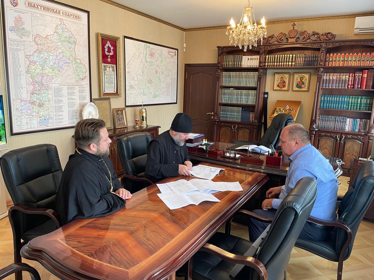 3 сентября 2024 года в епархиальном управлении города Шахты состоялась встреча епископа Шахтинского и Миллеровского Симона с представителем командования воинской части города Миллерово. Военнослужащие обратились к архиерею с инициативой о строительстве храма на территории части.