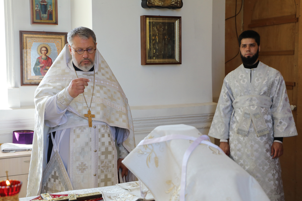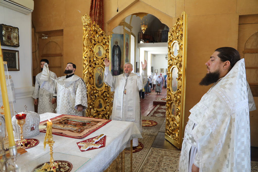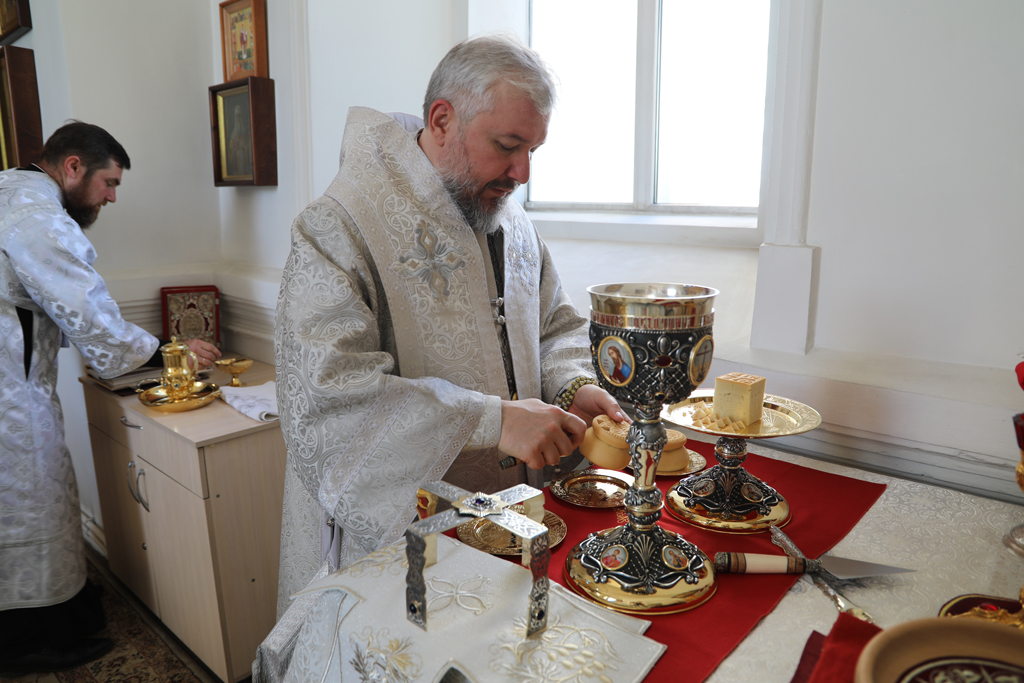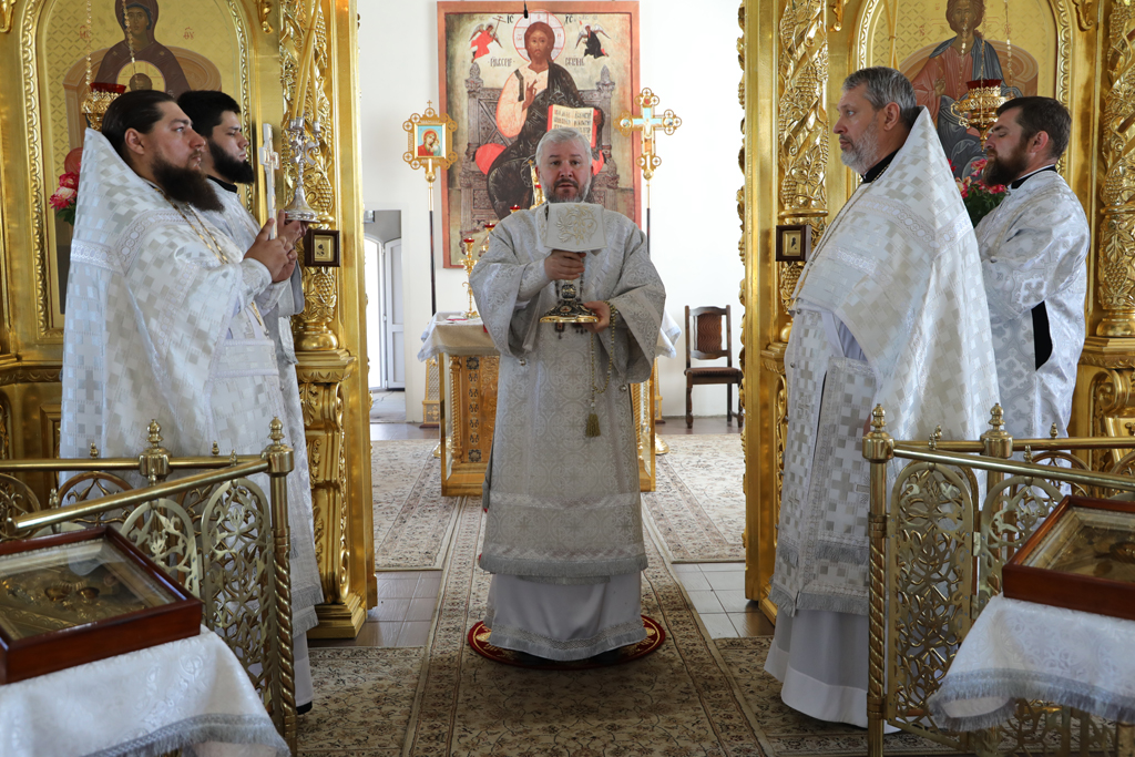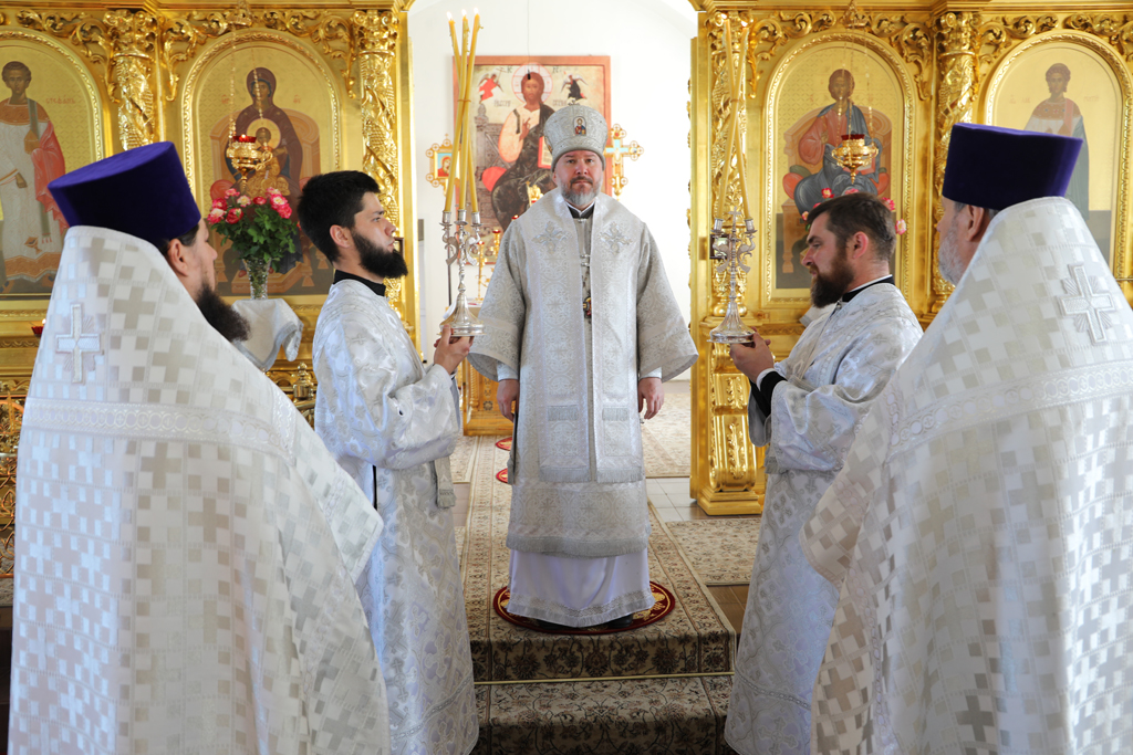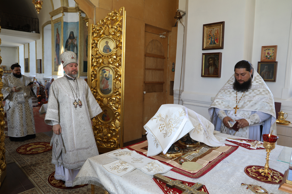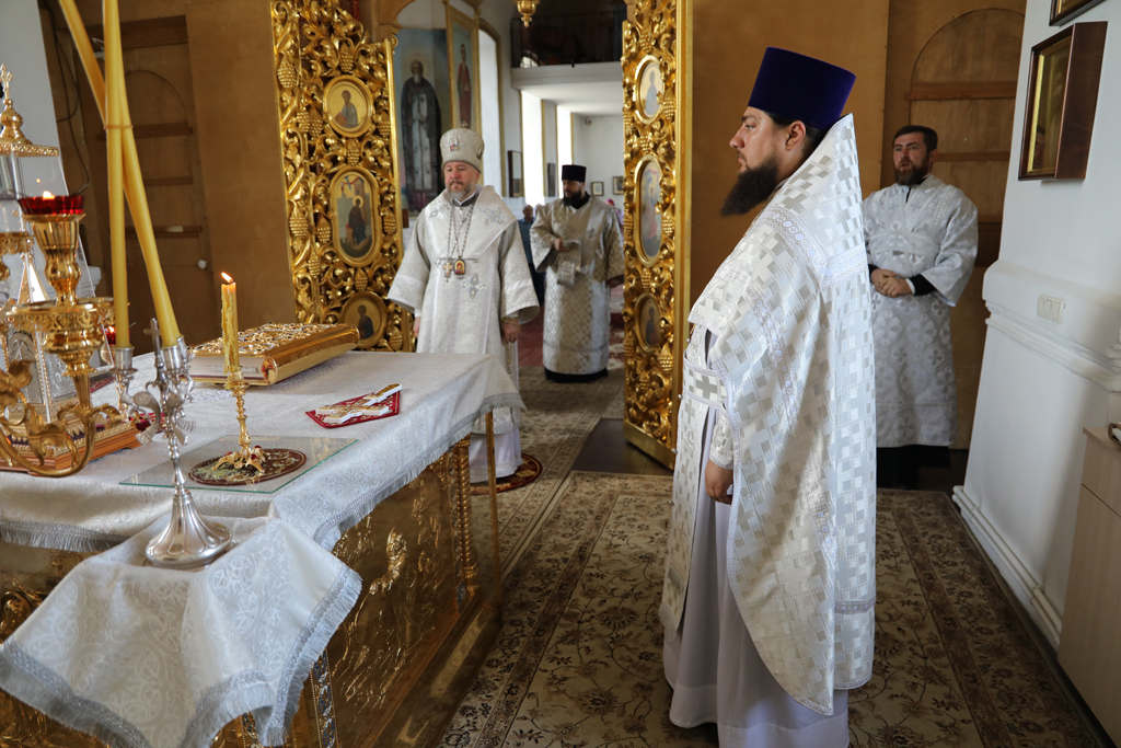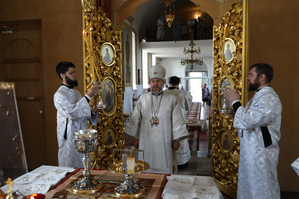 Его Преосвященству сослужили благочинный приходов Сулинского округа иерей Владислав Касьянов, настоятель храма иерей Олег Сударев и диакон Трофим Осяк.