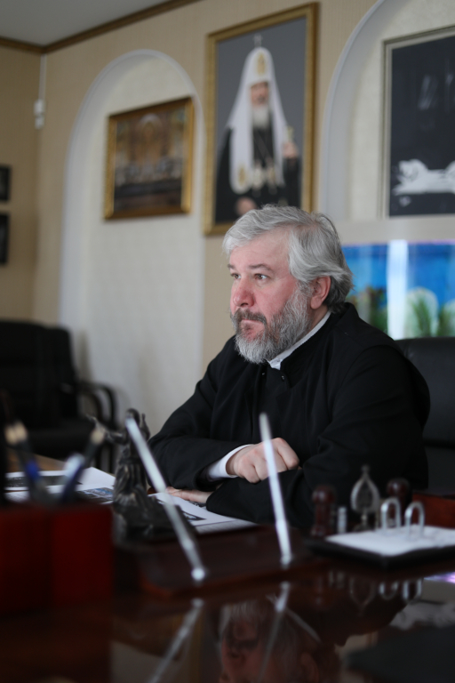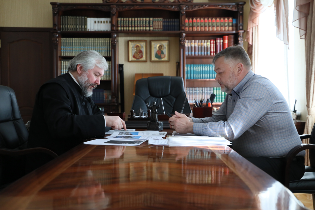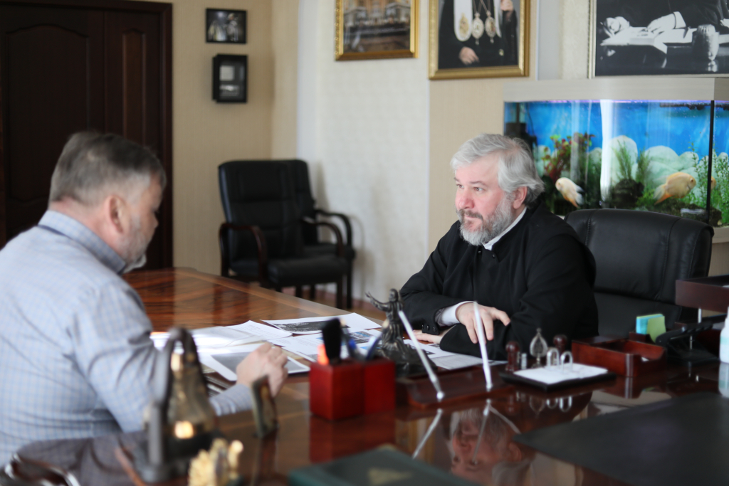 В Епархиальном управлении города Шахты состоялась встреча епископа Шахтинского и Миллеровского Симона и благотворителя храма святых мучениц Веры, Надежды, Любови и матери их Софии станицы Багаевской Александра Анатольевича Пономарёва.