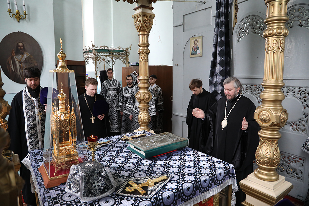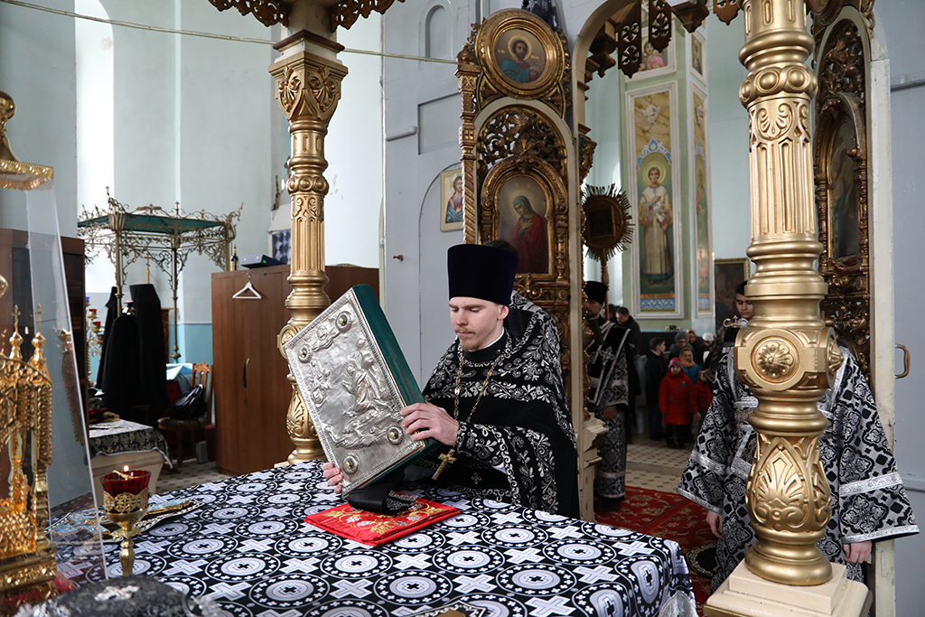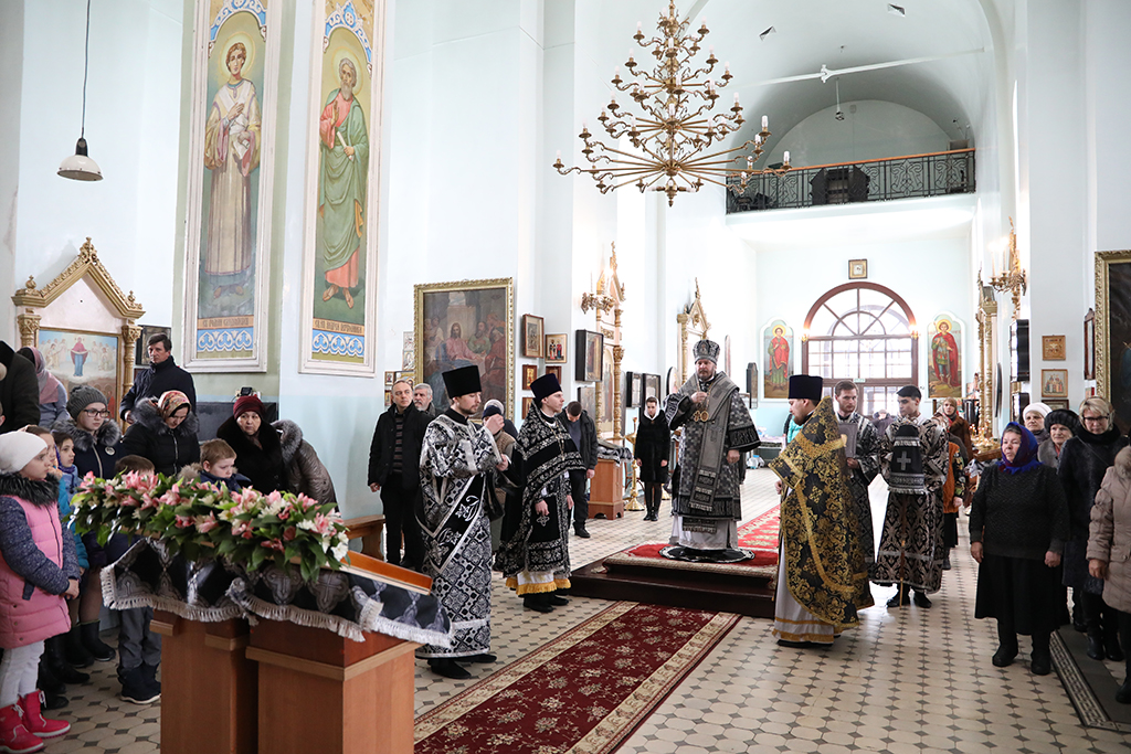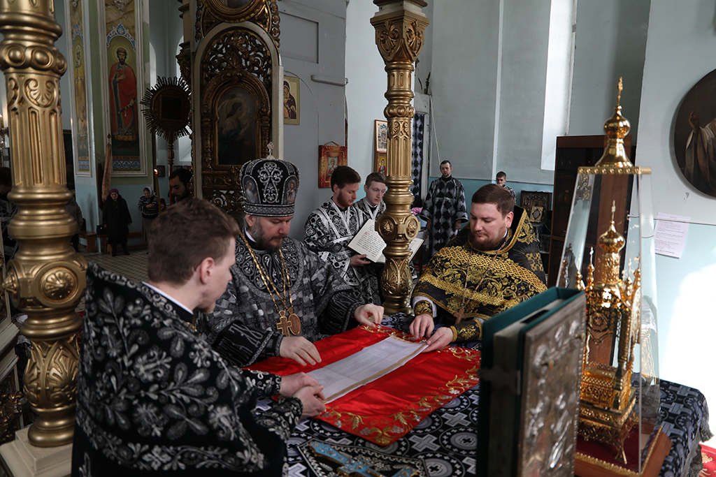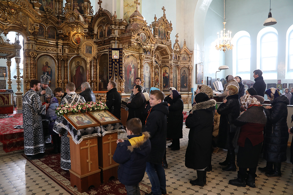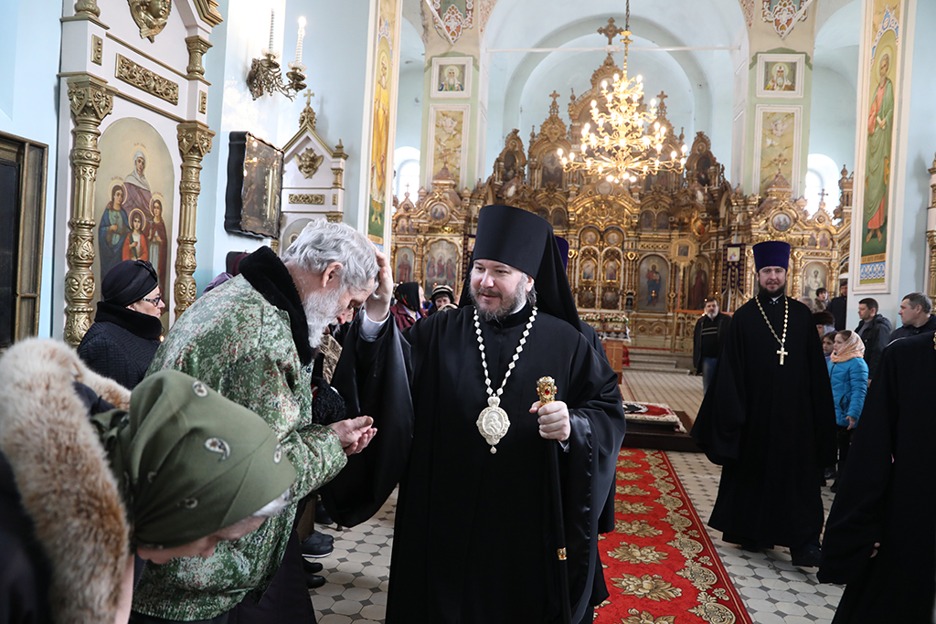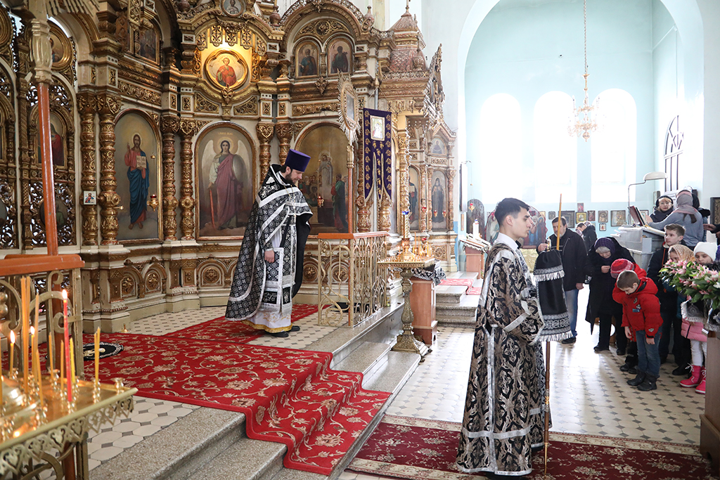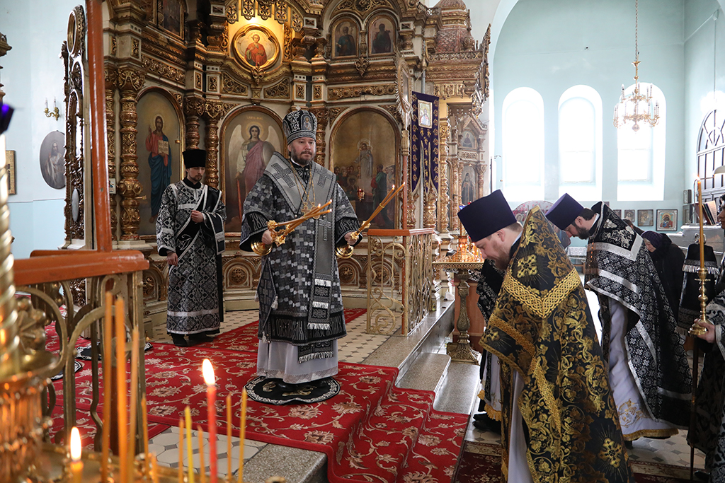 В четверг пятой седмицы Великого поста Преосвященнейший епископ Симон совершил Божественную литургию Преждеосвященных Даров в Успенском храме Донецкого Архиерейского подворья ст. Гундоровской