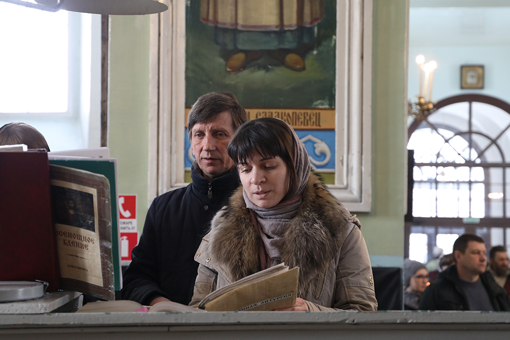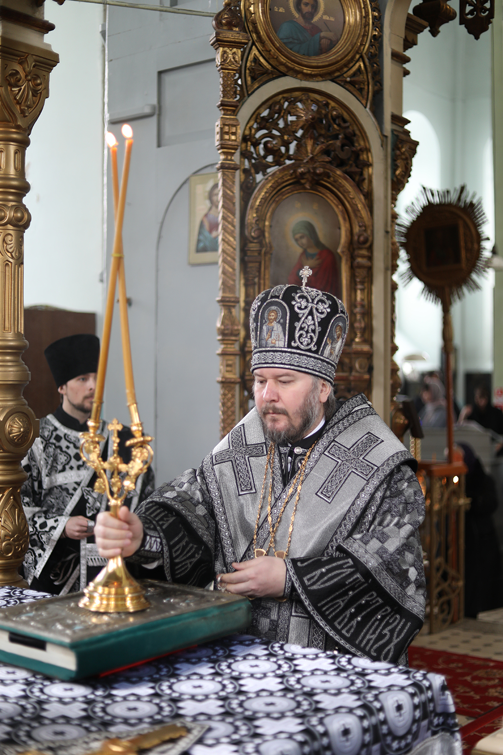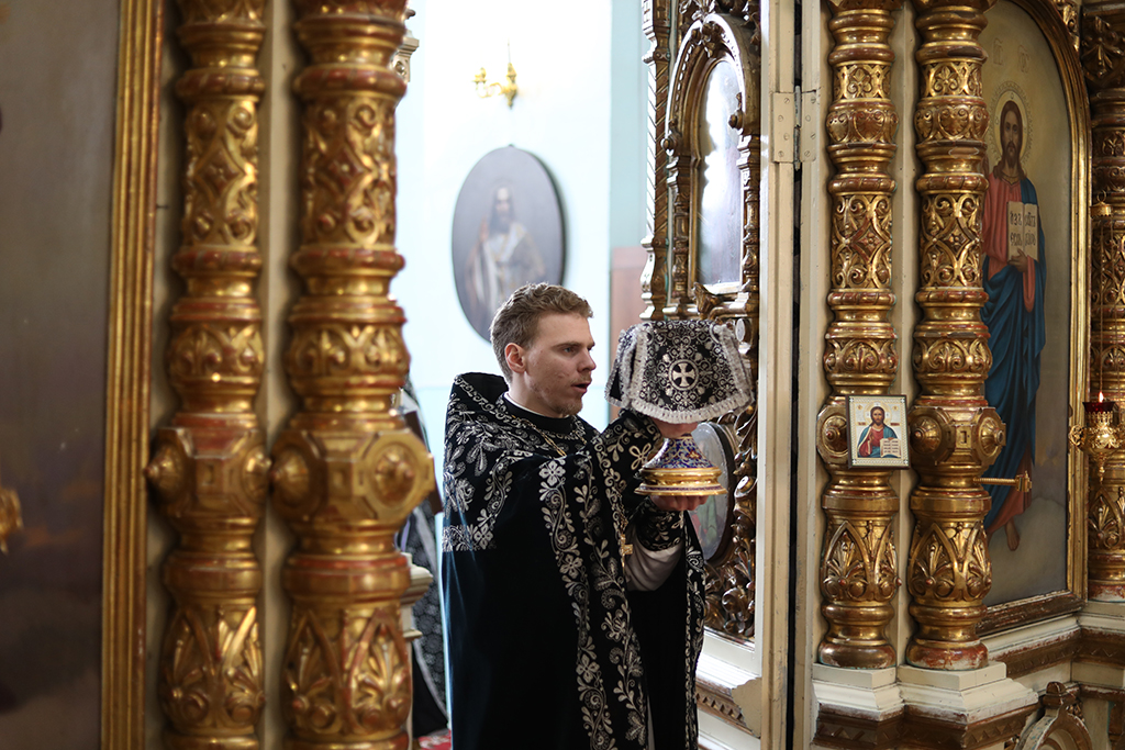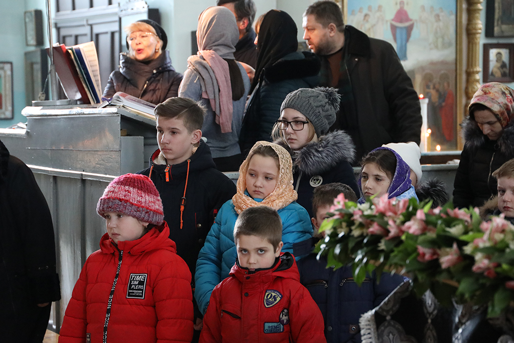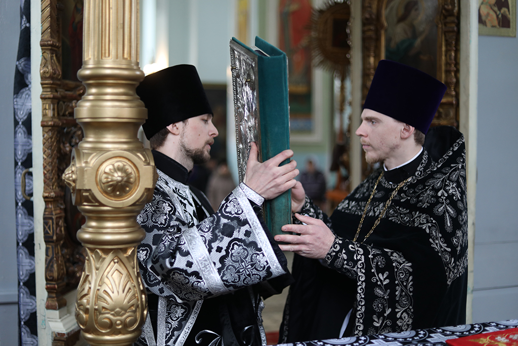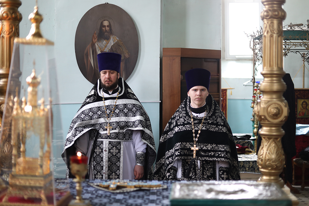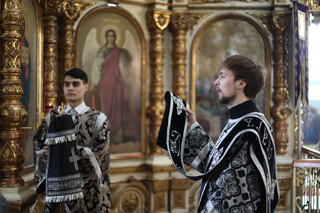 В четверг пятой седмицы Великого поста Преосвященнейший епископ Симон совершил Божественную литургию Преждеосвященных Даров в Успенском храме Донецкого Архиерейского подворья ст. Гундоровской
