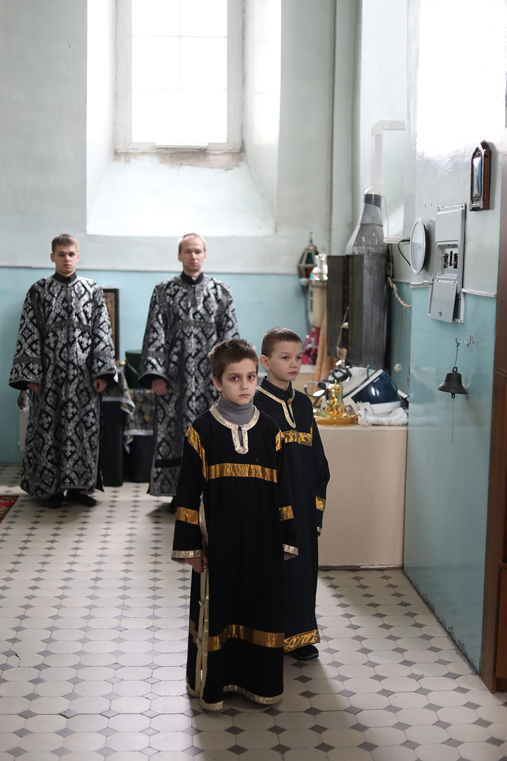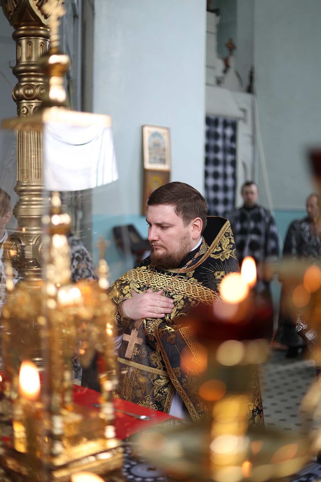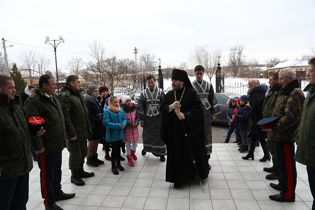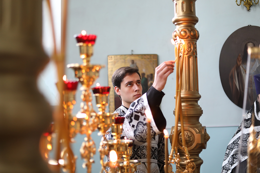 Его Преосвященству сослужили настоятель Архиерейского подворья протоиерей Глеб Гладышев, благочинный приходов Донецкого округа иерей Владимир Татаркин, настоятель храма святой блаженной Матроны Московской г. Донецка протоирей Александр Барановский, иеродиакон Флавиан (Васильев), диакон Андрей Иванов.