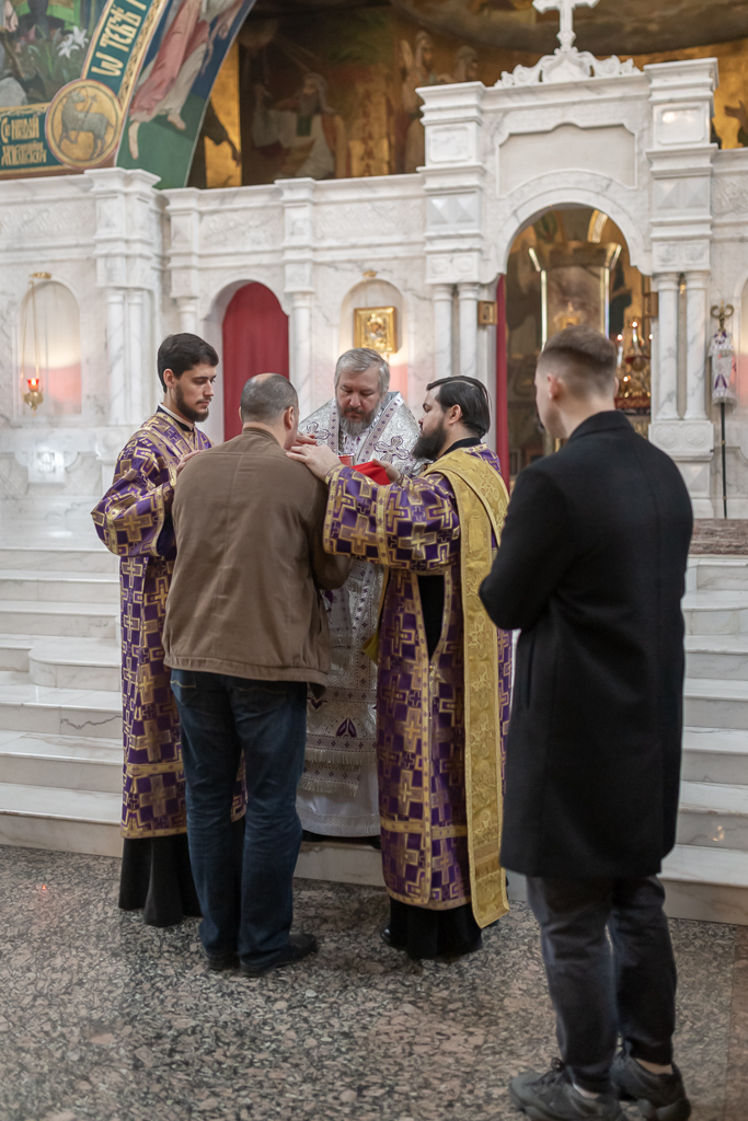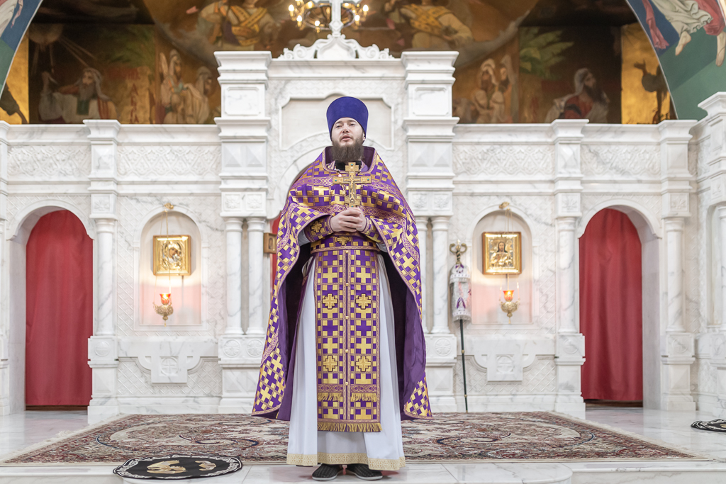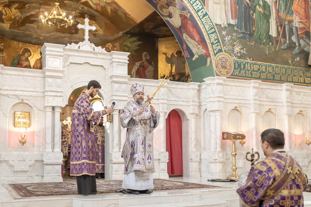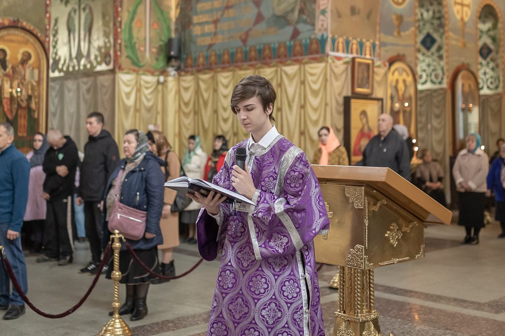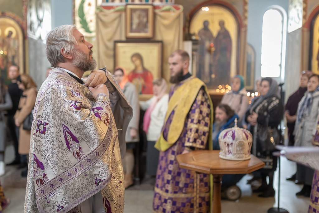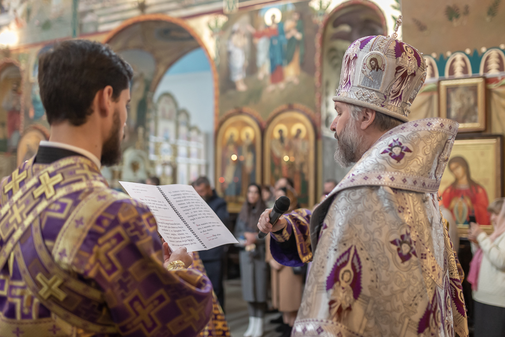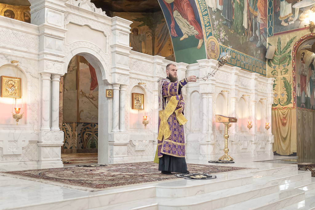Его Преосвященству сослужили настоятель собора иерей Александр Теличкин, иерей Даниил Зырянов, диакон Трофим Осяк и диакон Никита Осипов.