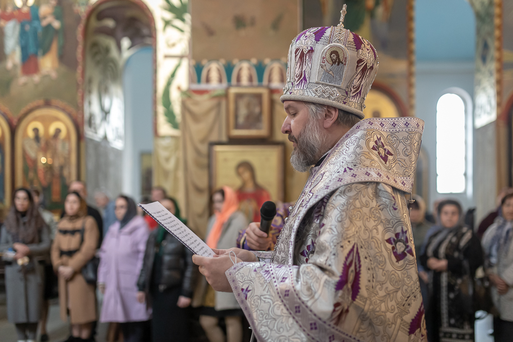 13 апреля 2023 года, в Четверг Страстной Седмицы Преосвященнейший епископ Симон совершил Божественную литургию по чину святителя Василия Великого в Покровском кафедральном соборе города Шахты.