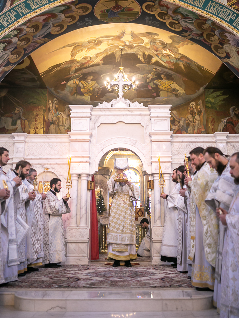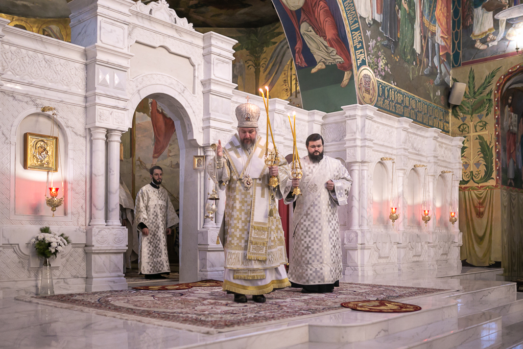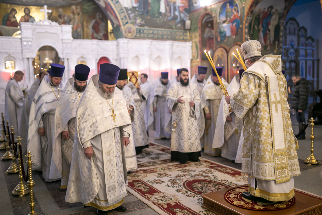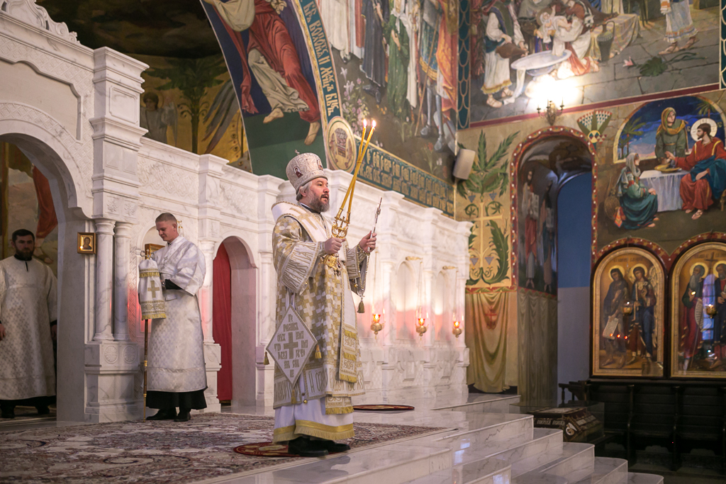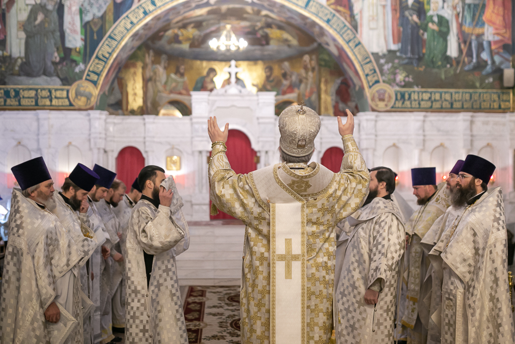 По окончании богослужения владыка Симон совершил славление празднику Рождества Христова и преподал молящимся архипастырское благословение.