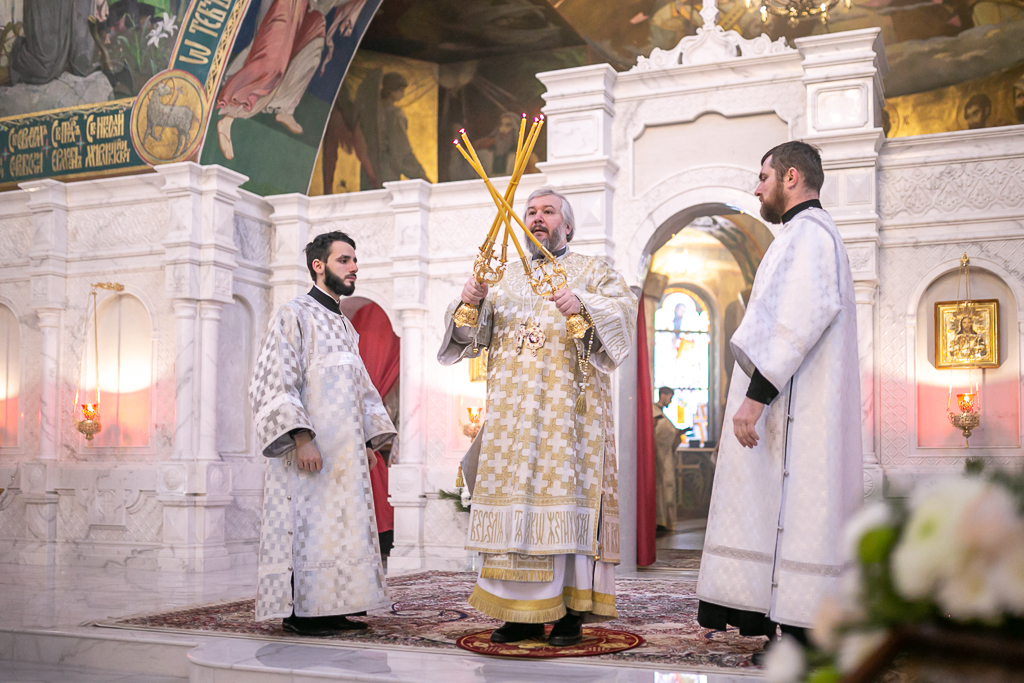 Его Преосвященству сослужило духовенство Шахтинской епархии.
