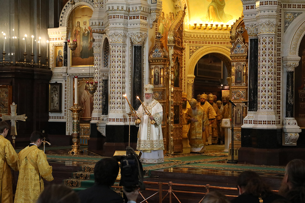 После сугубой ектении Предстоятель Русской Православной Церкви вознес молитву о мире на Украине.