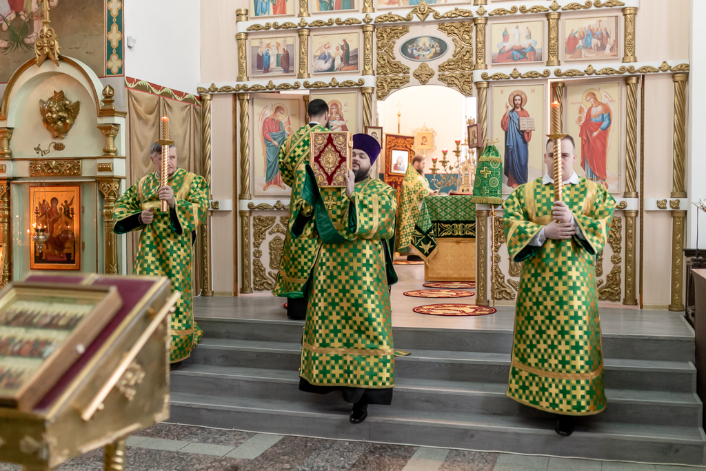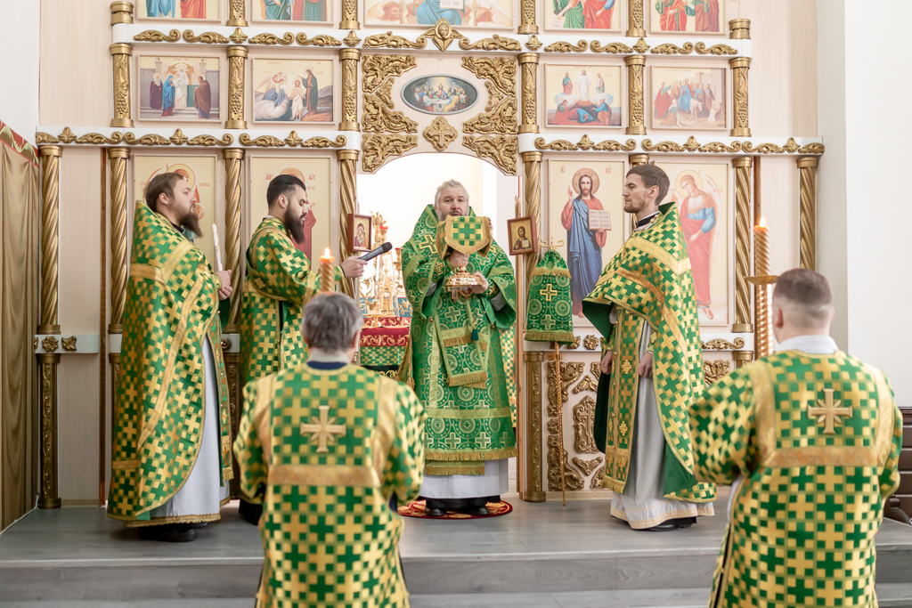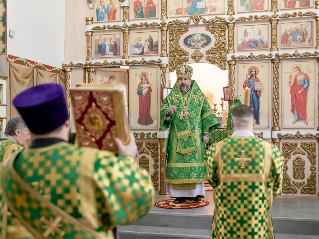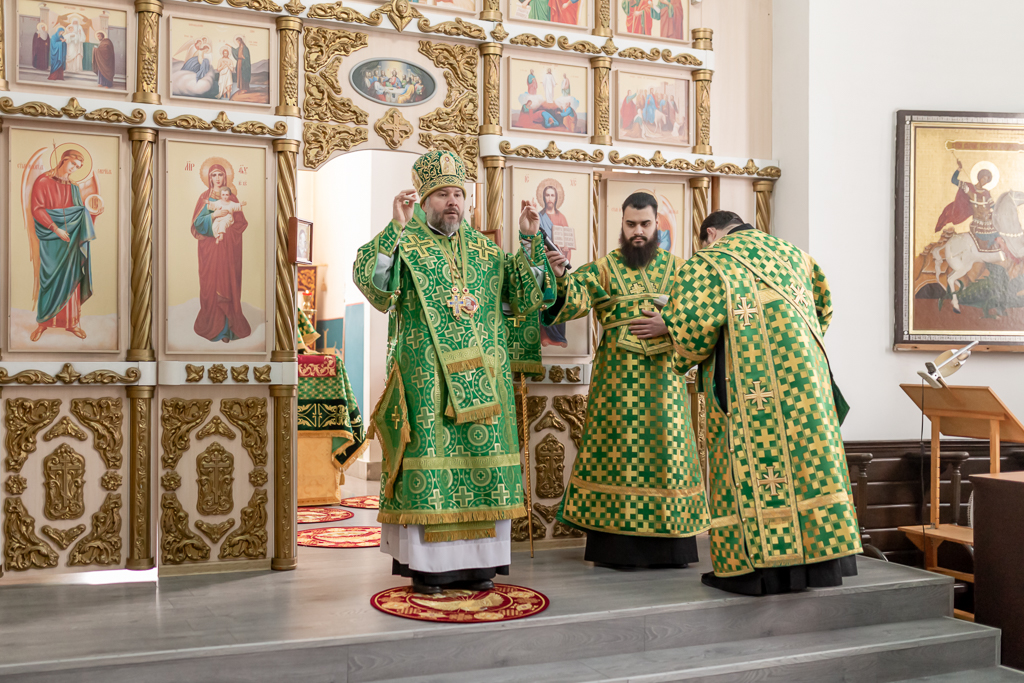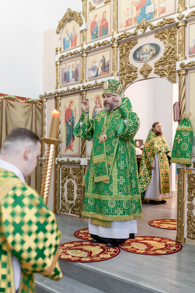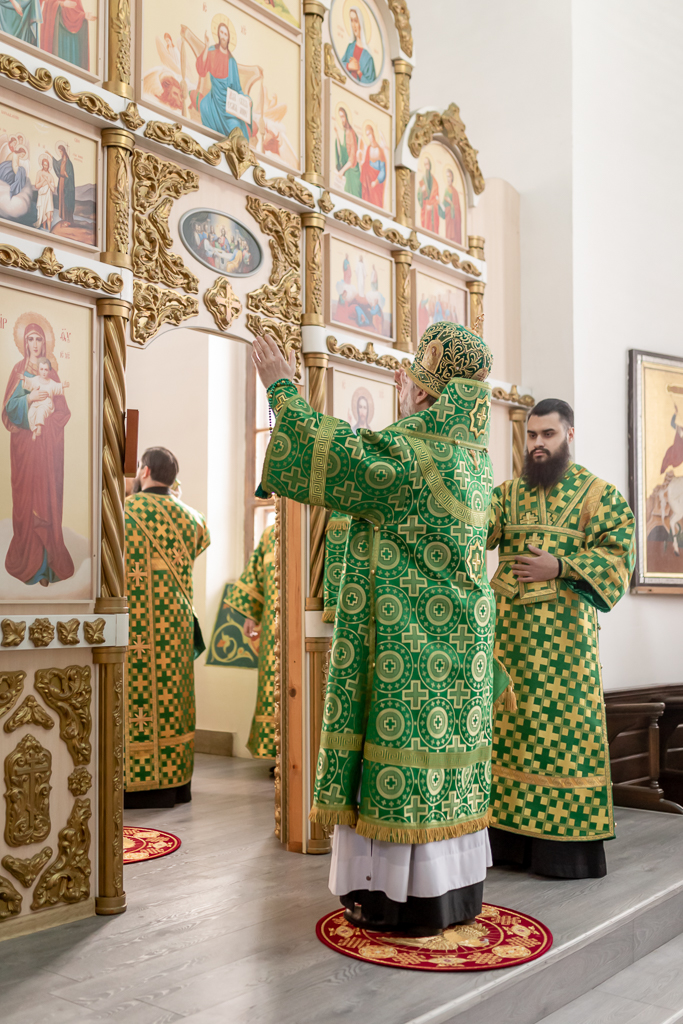 Его Преосвященству сослужило духовенство собора.