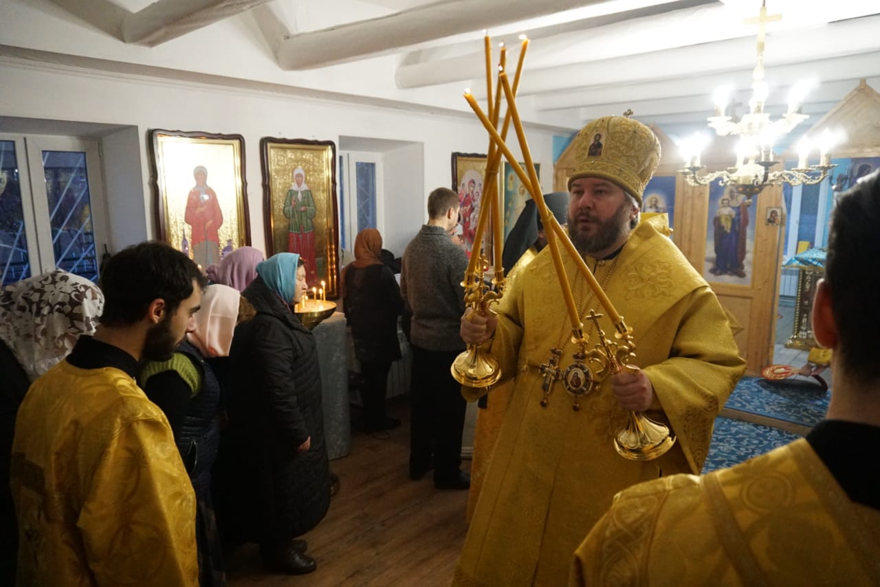 Его Преосвященству сослужили благочинный приходов Новошахтинского округа протоиерей Роман Амплеев, иеромонах Варнава (Максименко), иеродиакон Флавиан (Васильев).