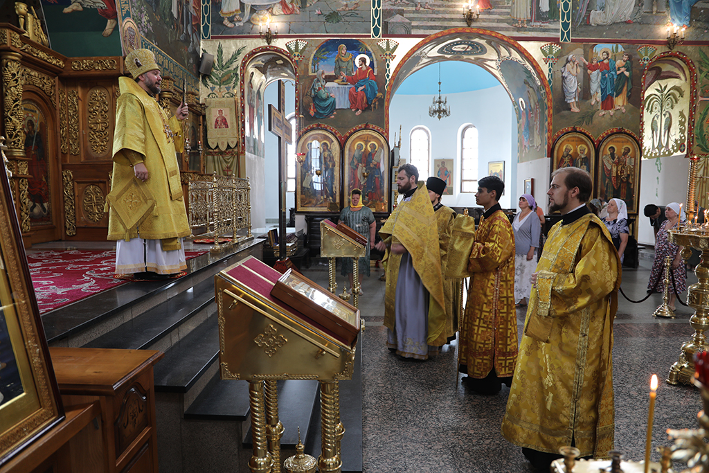 Его Преосвященству сослужило духовенство собора.