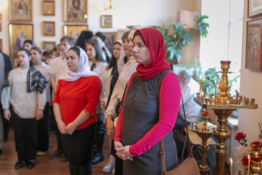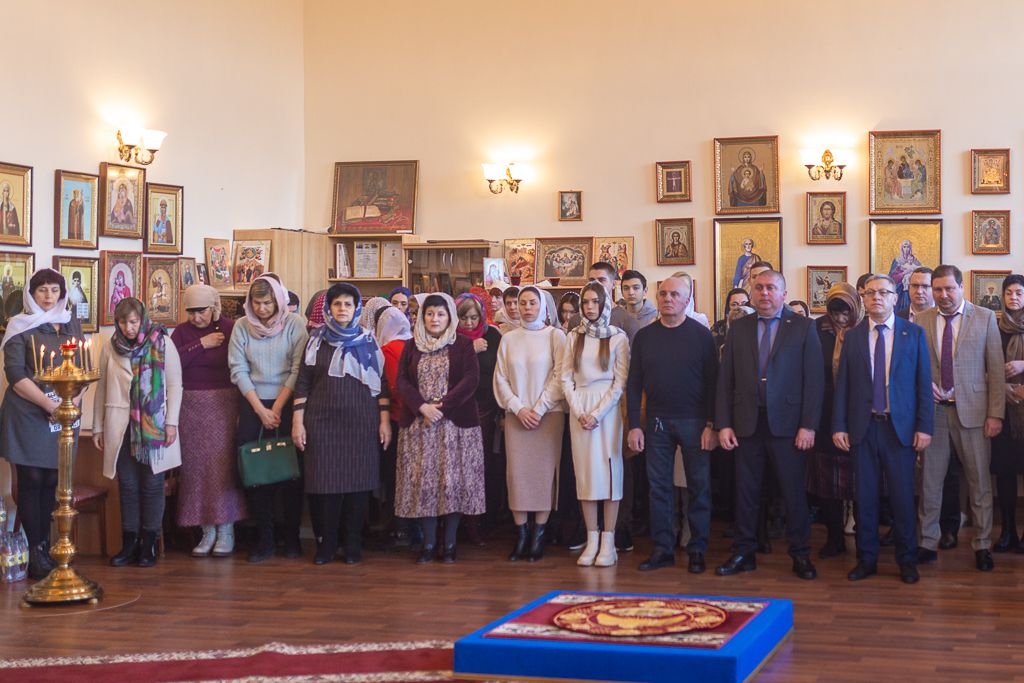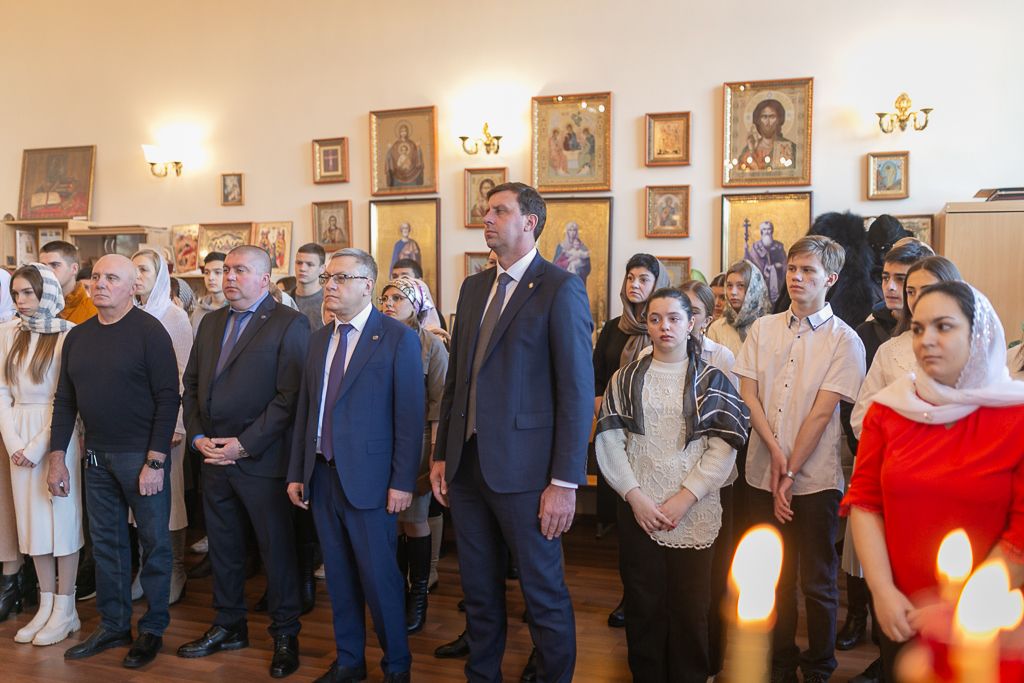 За богослужением молились директор института Сергей Георгиевич Страданченко, сотрудники кафедры «Православная культура и теология», прихожане храмов города и студенты.