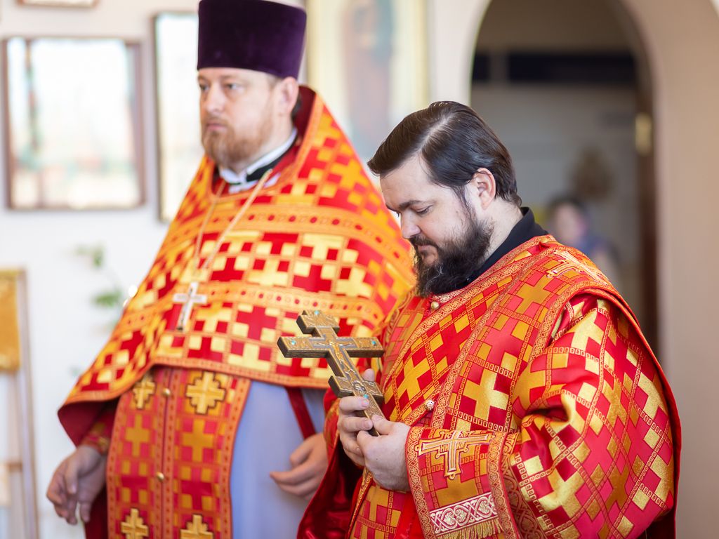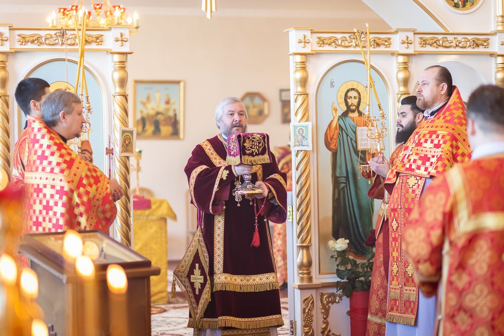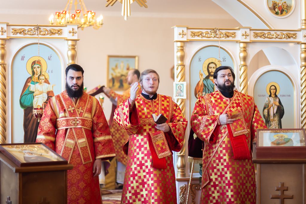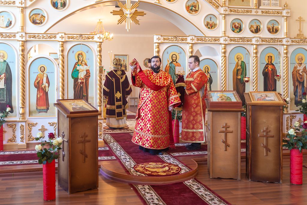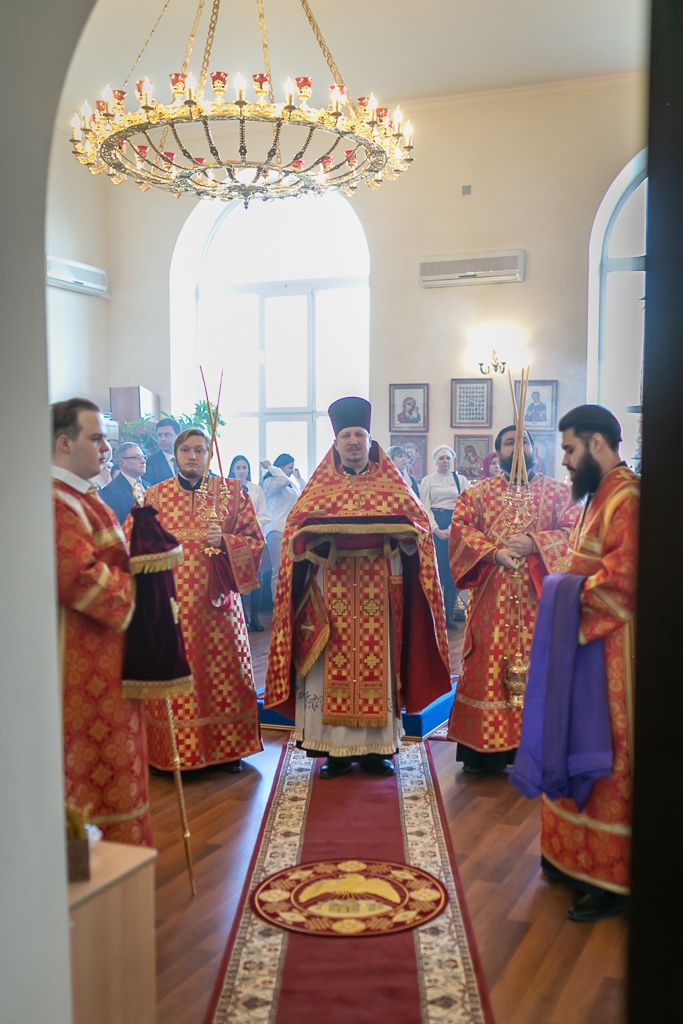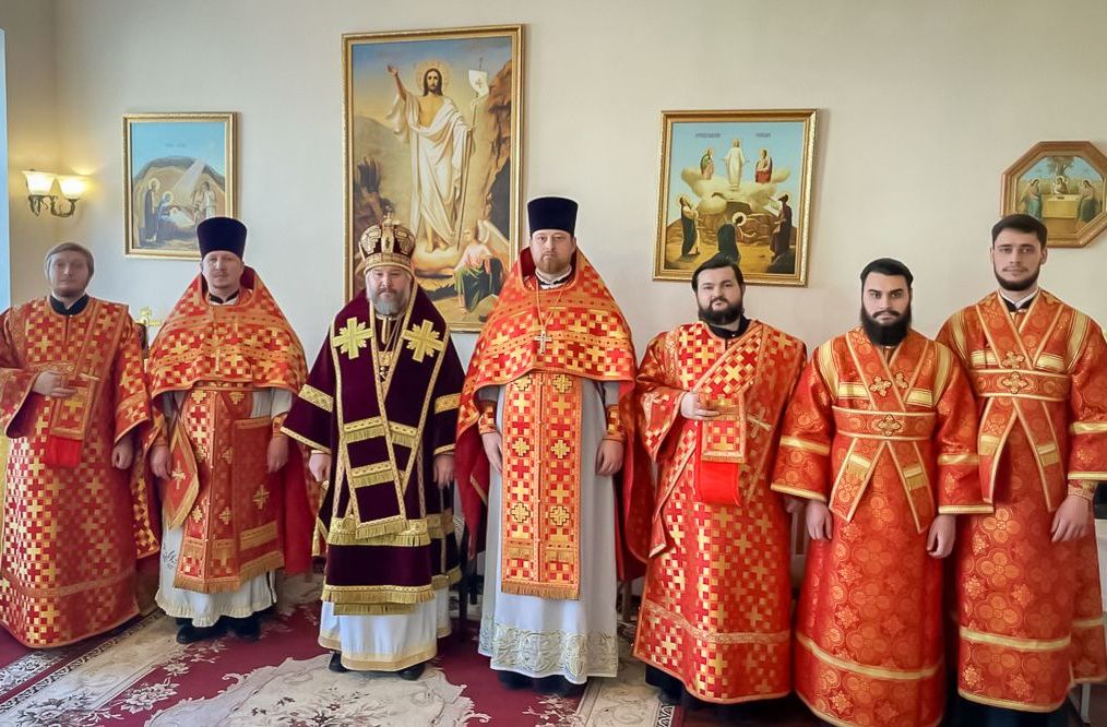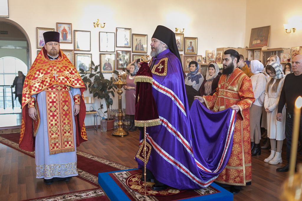 Его Преосвященству сослужили настоятель храма, председатель епархиального одела по взаимоотношению Церкви с обществом, старший преподаватель кафедры «Православная культура и теология» ИСОиП (филиала) ДГТУ протоиерей Роман Амплеев; настоятель храма Казанской иконы Божией Матери г. Гуково протоиерей Николай Быков, диакон Трофим Осяк, диакон Андрей Трошин и диакон Вячеслав Иващенко.