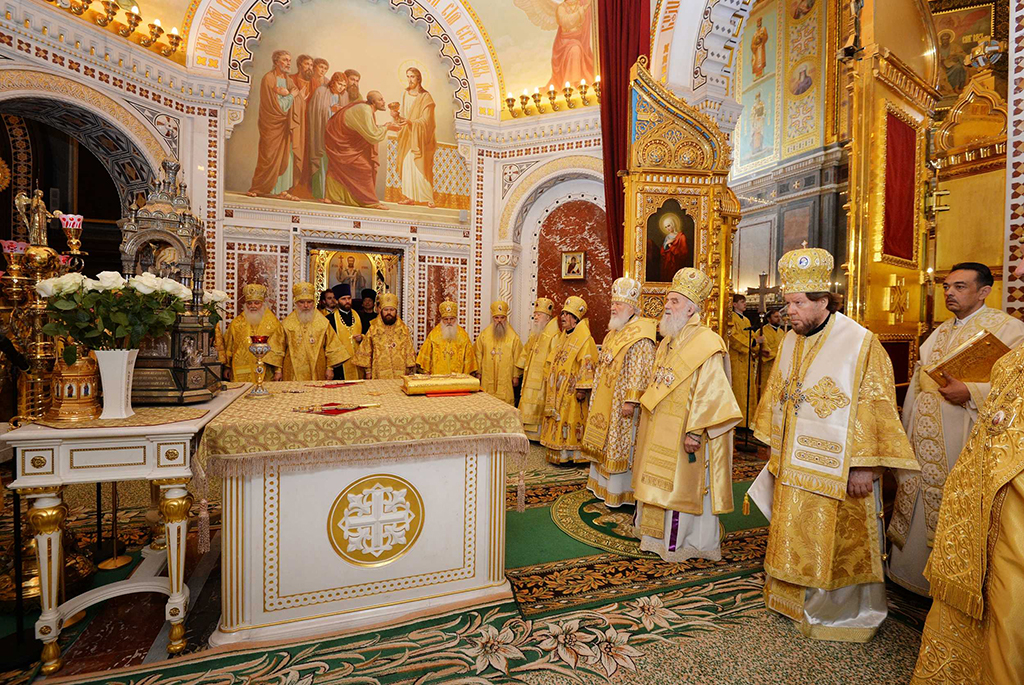 В богослужении участвовали архиереи и духовенство Поместных Православных Церквей.