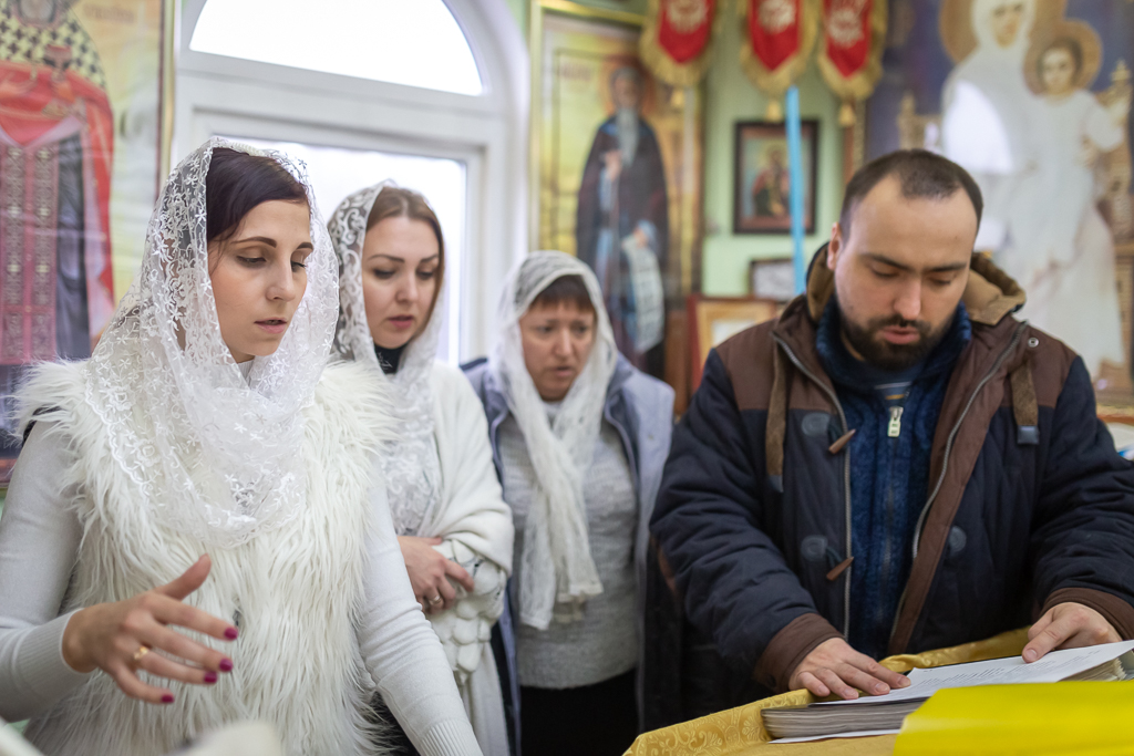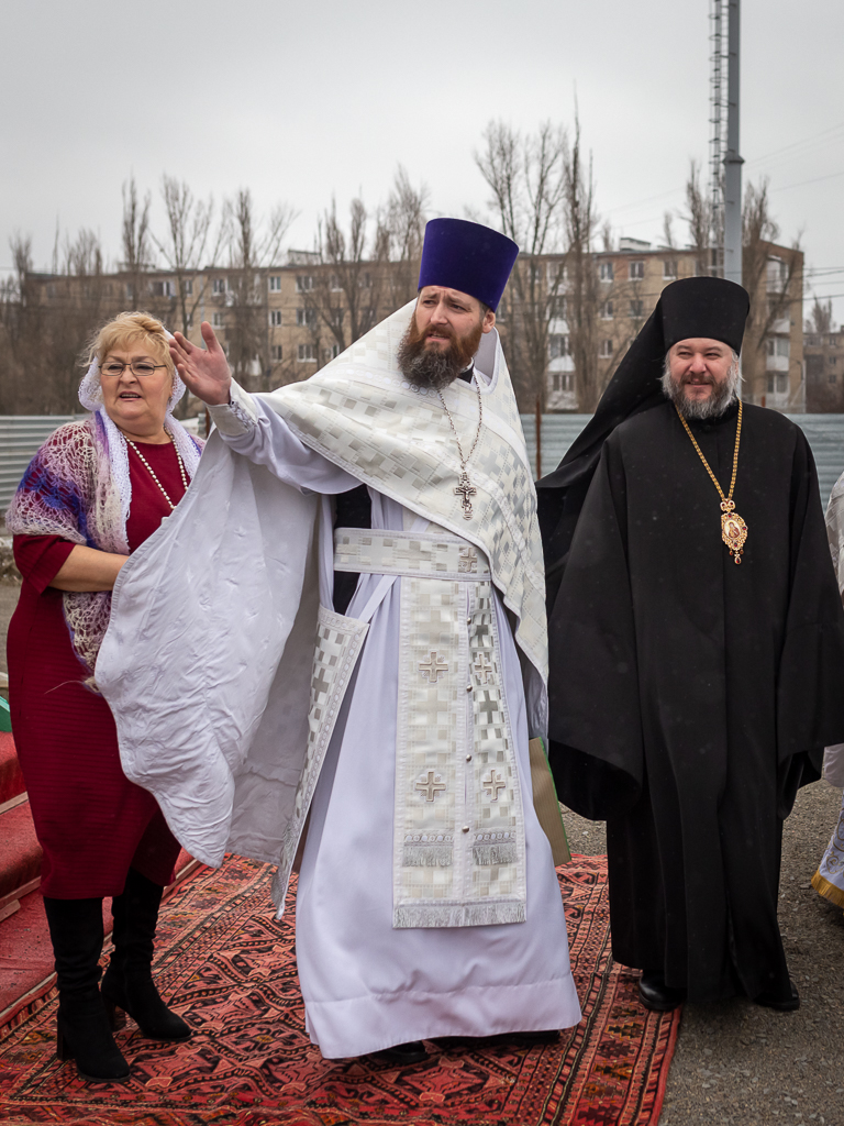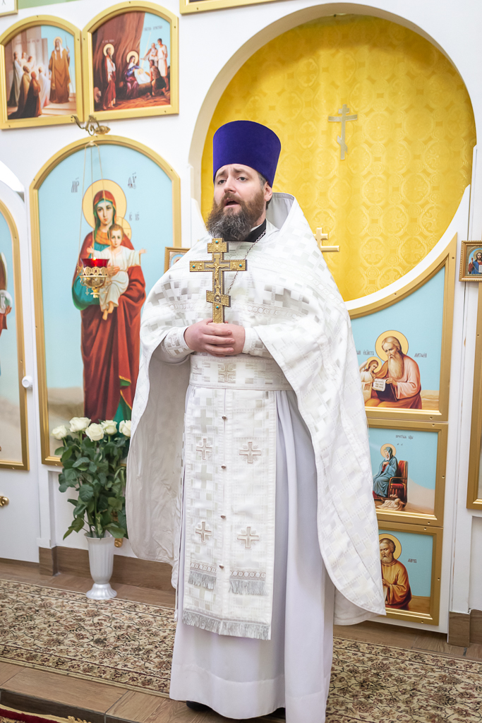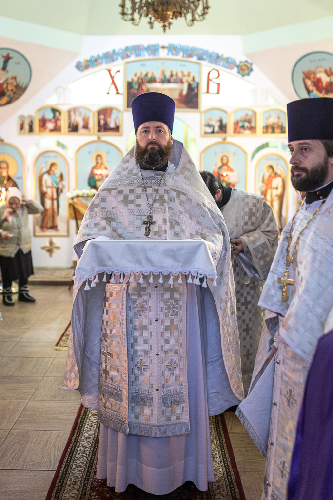 Его преосвященству сослужили благочинный приходов Александровск-Грушевского округа протоирей Сергий Яценко, настоятель храма иерей Алексий Скосарев и диакон Трофим Осяк.