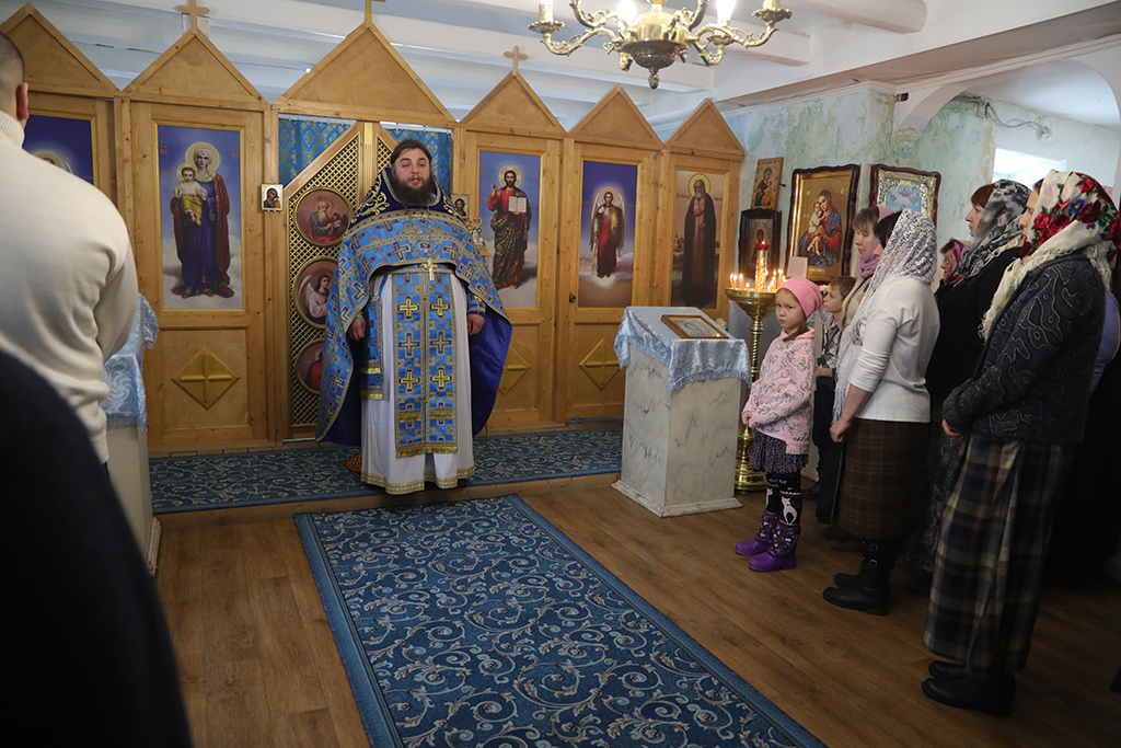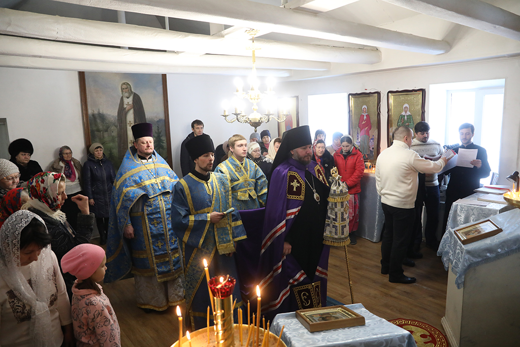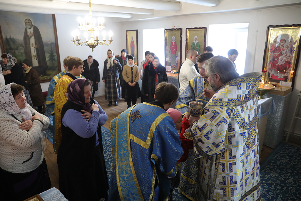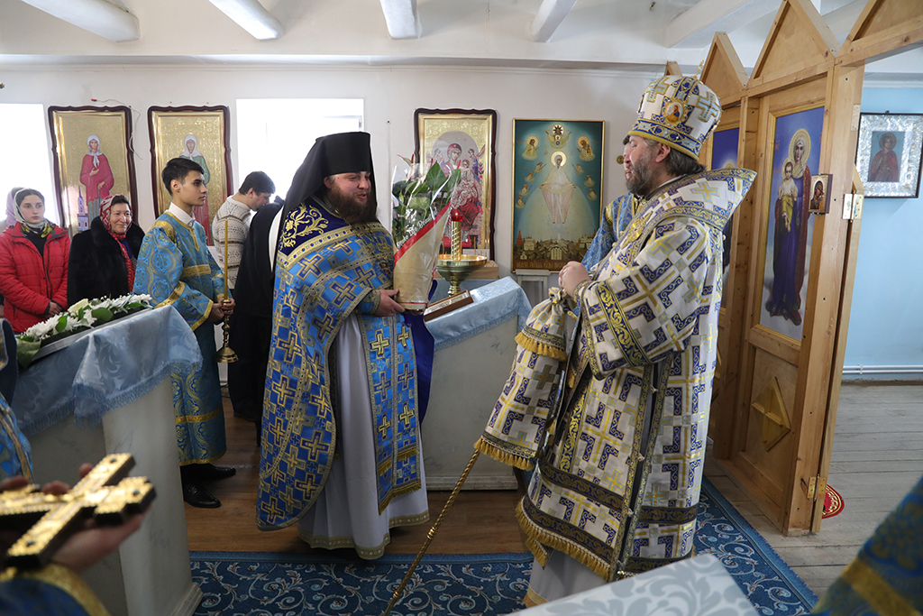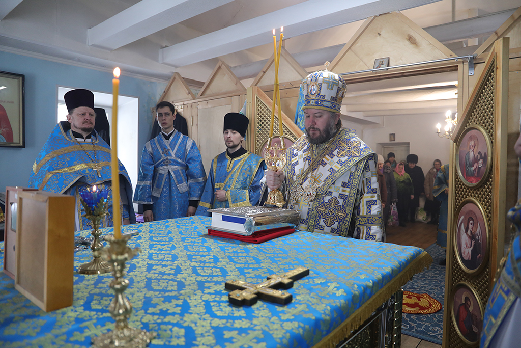 Совершив причащение, епископ Симон возглавил молебен ко Пресвятой Богородице перед чтимым в этот день образом.