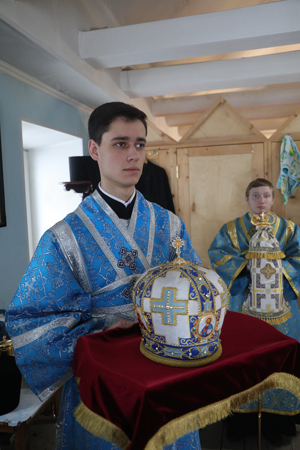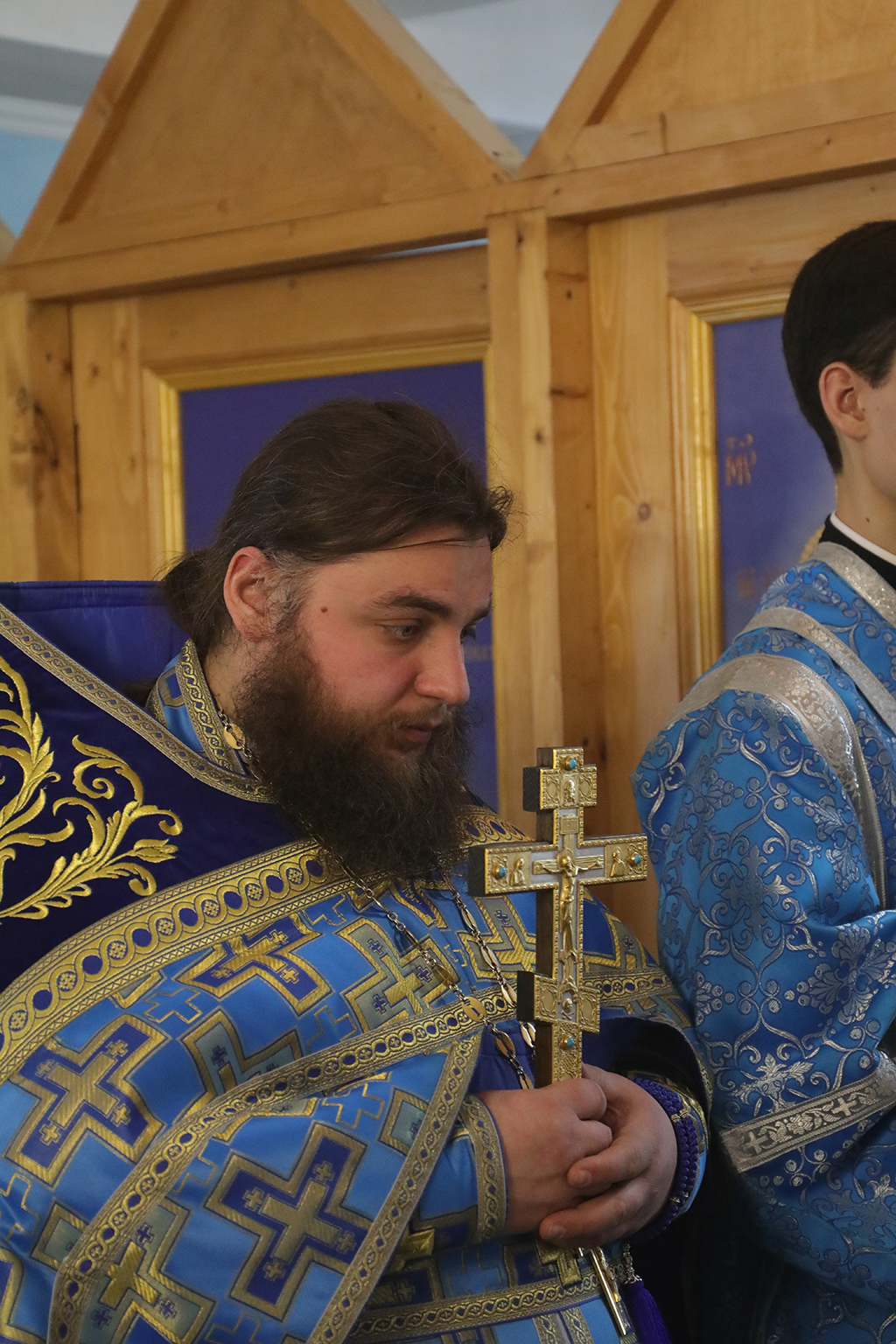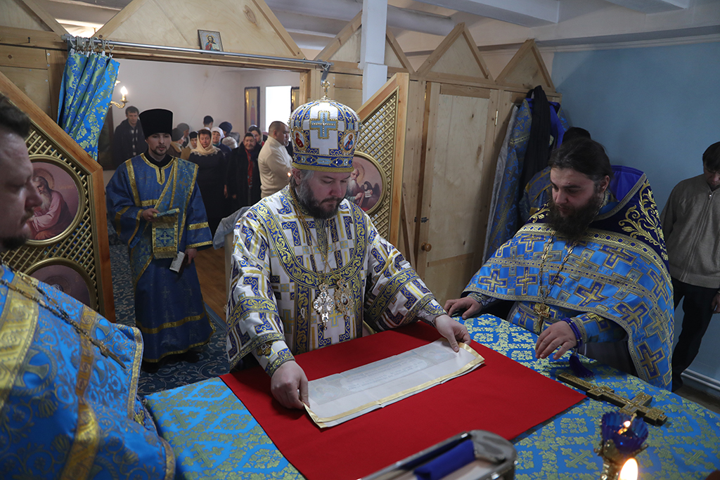 Его Преосвященству сослужили благочинный приходов Александровск-Грушевского округа протоирей Владимир Иванов, настоятель храма иеромонах Варнава (Максименко), иеродиакон Флавиан (Васильев).