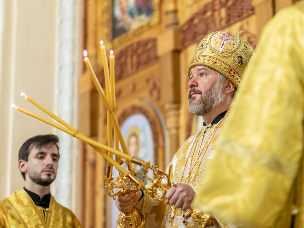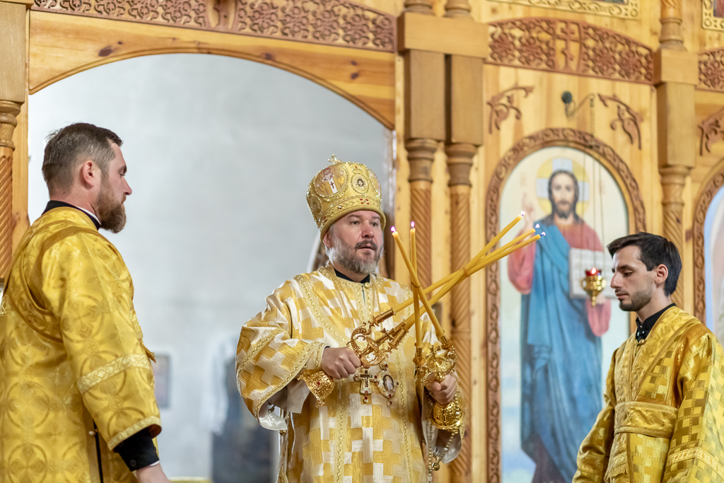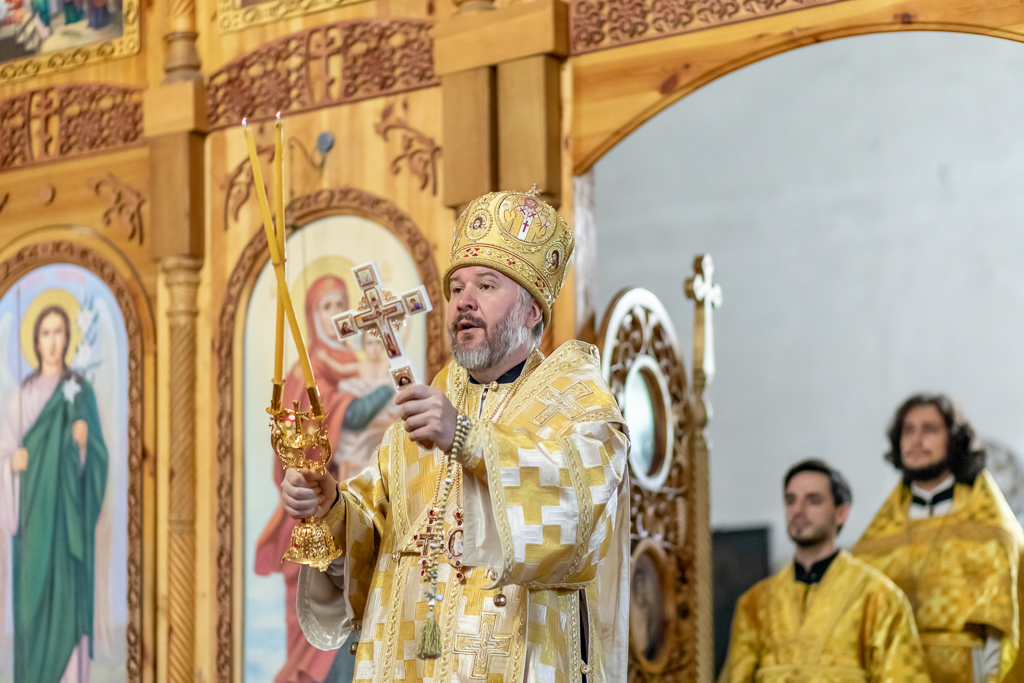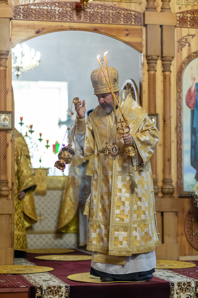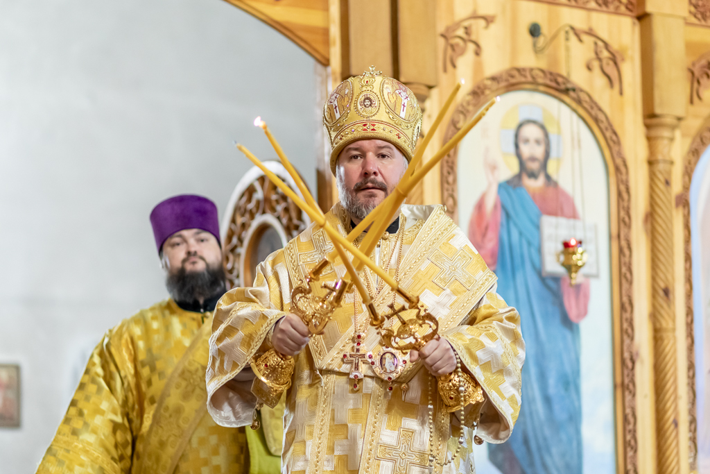 За праздничным богослужением владыке также сослужили иерей Михаил Дубянский, диакон Трофим Осяк и диакон Вячеслав Иващенко.