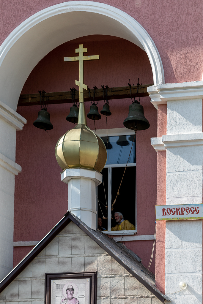 На подворье храма с колокольным звоном архипастыря встречал настоятель протоиерей Митрофан Мухин.