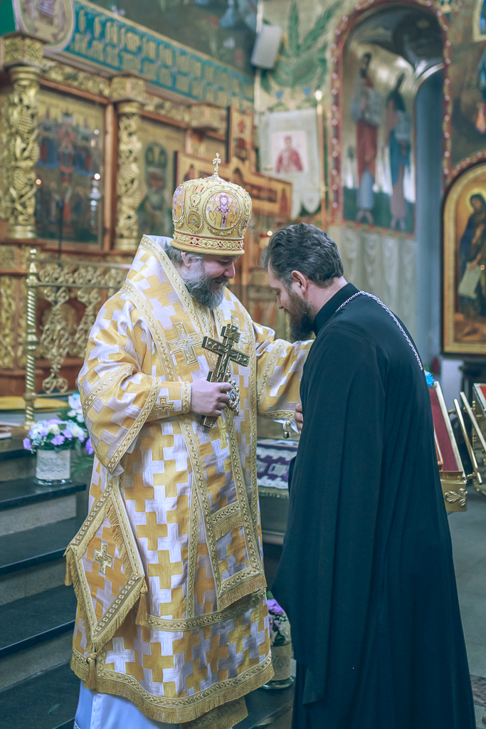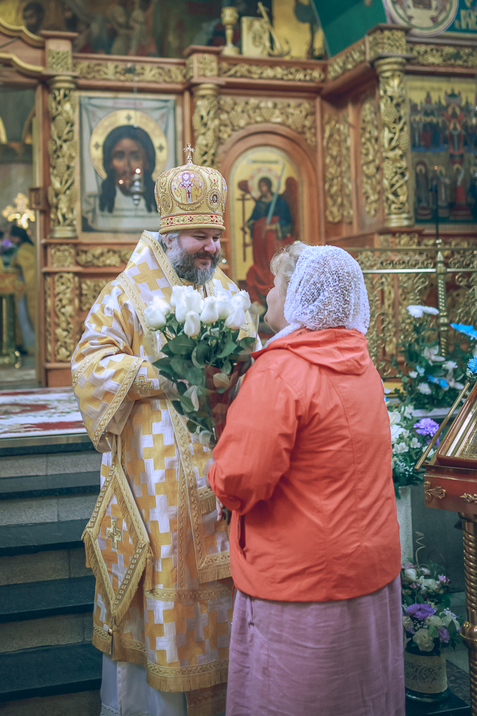 После Литургии владыка Симон преподал собравшимся на молитву благословение, а священнослужители и прихожане поздравили своего архипастыря со знаменательным днем.