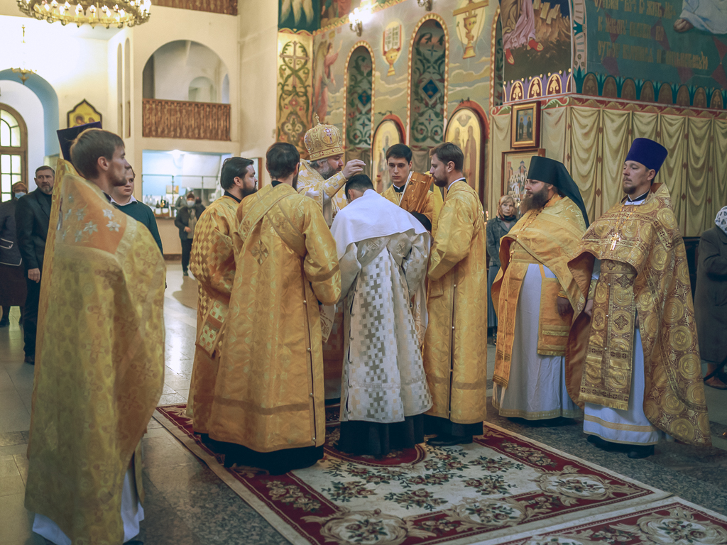 За богослужением архипастырь рукоположил в сан диакона студента Донской духовной семинарии Вячеслава Иващенко. Преосвященнейший епископ Симон духовно напутствовал рукоположенного и благословил его на прохождение богослужебной практики в Покровском кафедральном соборе города Шахты.