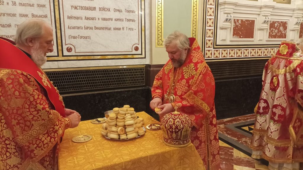 На сугубой ектении были вознесены прошения о единстве Святой Руси и особые прошения о тезоименитом Святейшем Патриархе Кирилле.