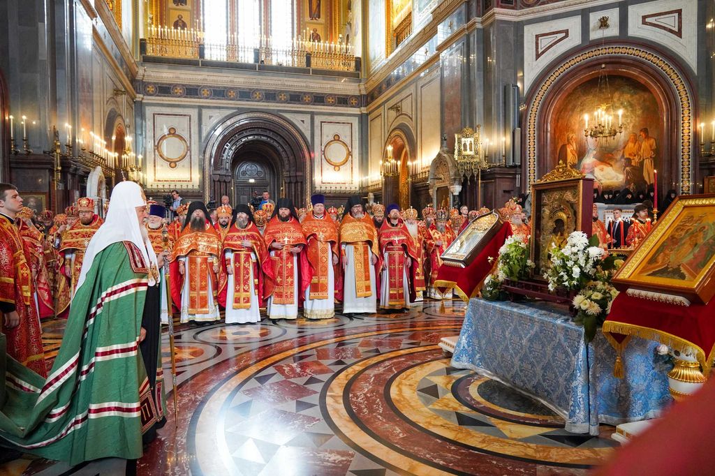 24 мая 2023 года, в день отдания праздника Пасхи, предпразднство Вознесения Господня, день памяти равноапостольных Мефодия и Кирилла, учителей Словенских, Святейший Патриарх Московский и всея Руси Кирилл совершил Божественную литургию в кафедральном соборном Храме Христа Спасителя в Москве. В этот день также отмечаются День славянской письменности и культуры и тезоименитство Святейшего Патриарха Кирилла.