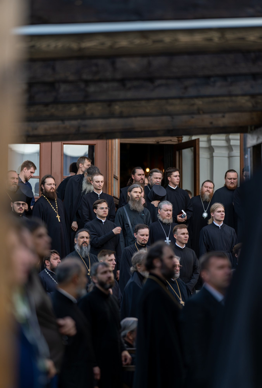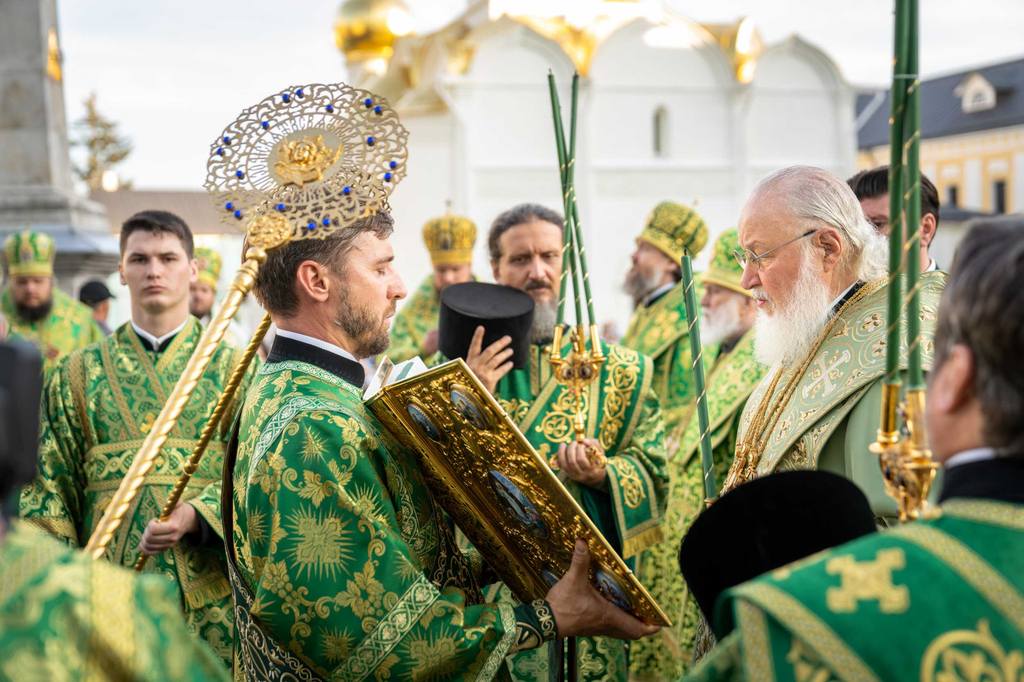 Вместе с предстоятелем Церкви молились собор Преосвященных архипастырей, прибывших на торжества в Лавру, насельники обители в священном сане, духовенство Русской Православной Церкви и многочисленные паломники.