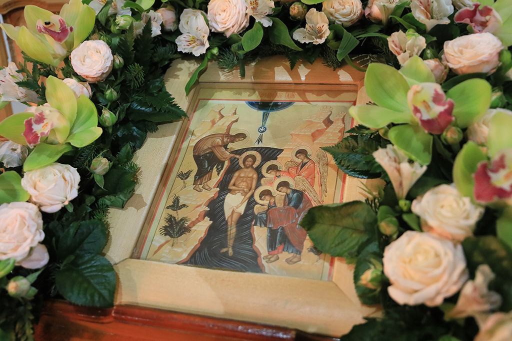 Совершив Литургию, Преосвященнейший епископ Симон возглавил чин великого освящения воды, затем окропил святой водой храм и молящихся.