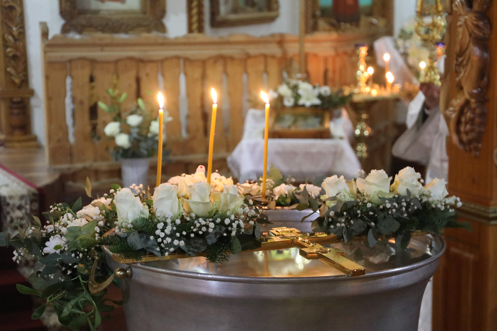 Преосвященнейший епископ Симон совершил чин великого освящения воды, затем окропил святой водой храм и молящихся.