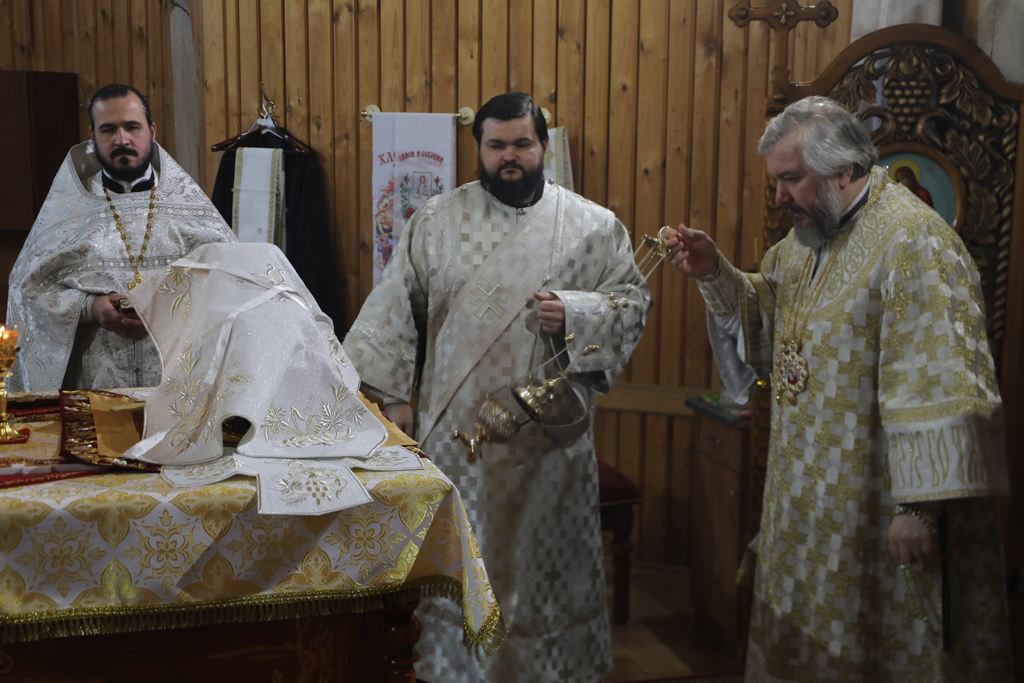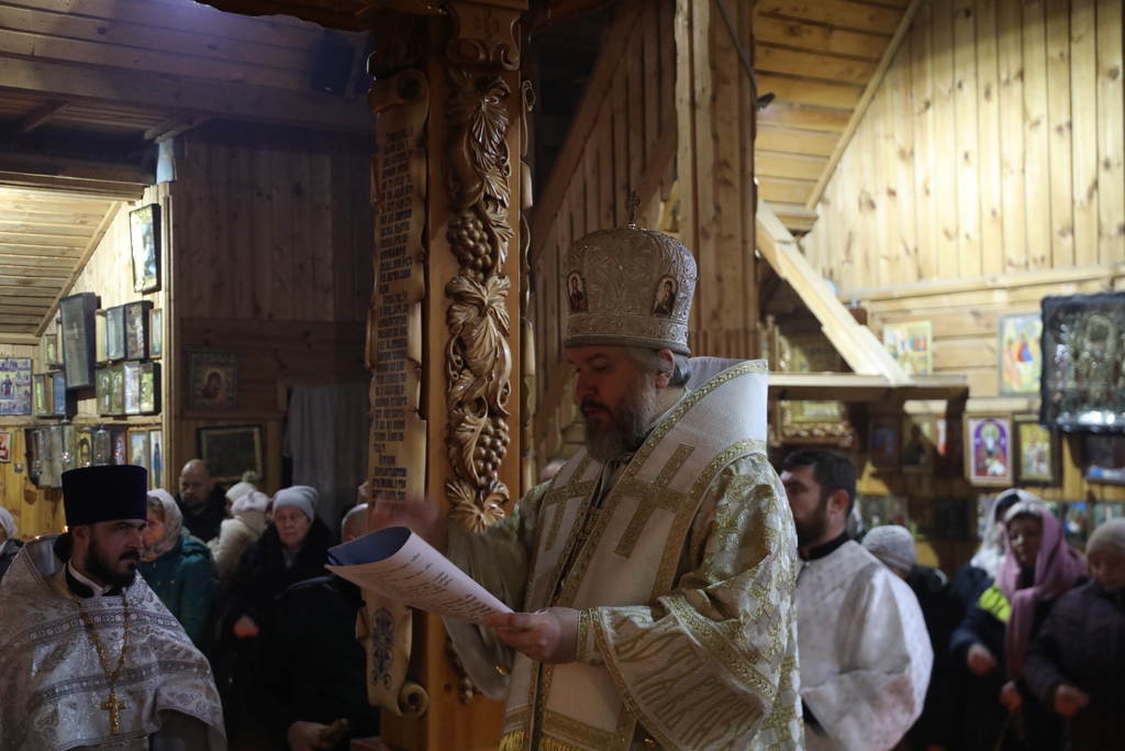Вместе с архипастырем молились настоятель храма иерей Владимир Осяк и диакон Трофим Осяк.